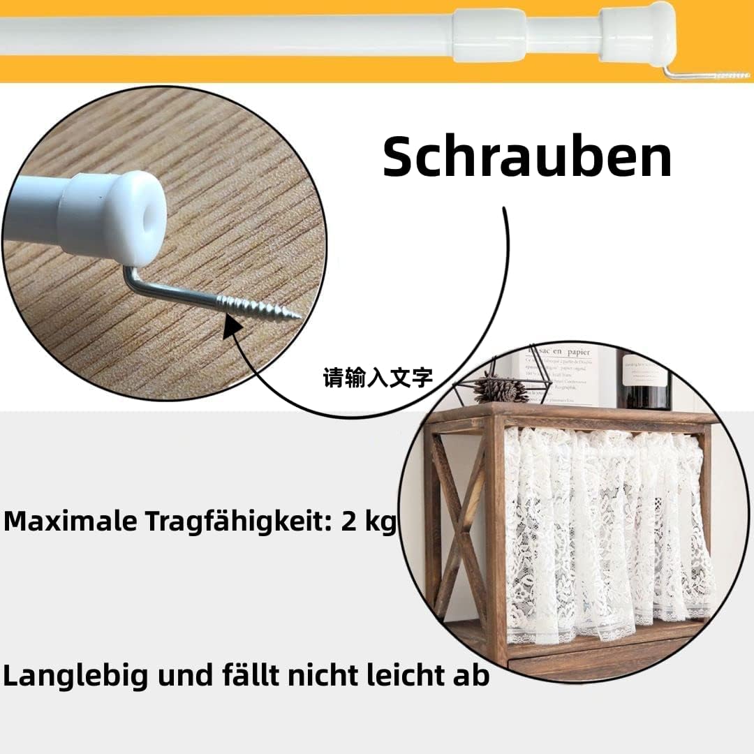 • Лесен за монтаж: Безстепенно регулируема дължина между 40-60 см и 7,6 мм/10 мм в диаметър. Не са необходими инструменти, винтове, лепило или отвори, просто регулирайте дължината, за да се закрепи между две стени. Подходящ за много тесни ситуации, можете да го направите сами.