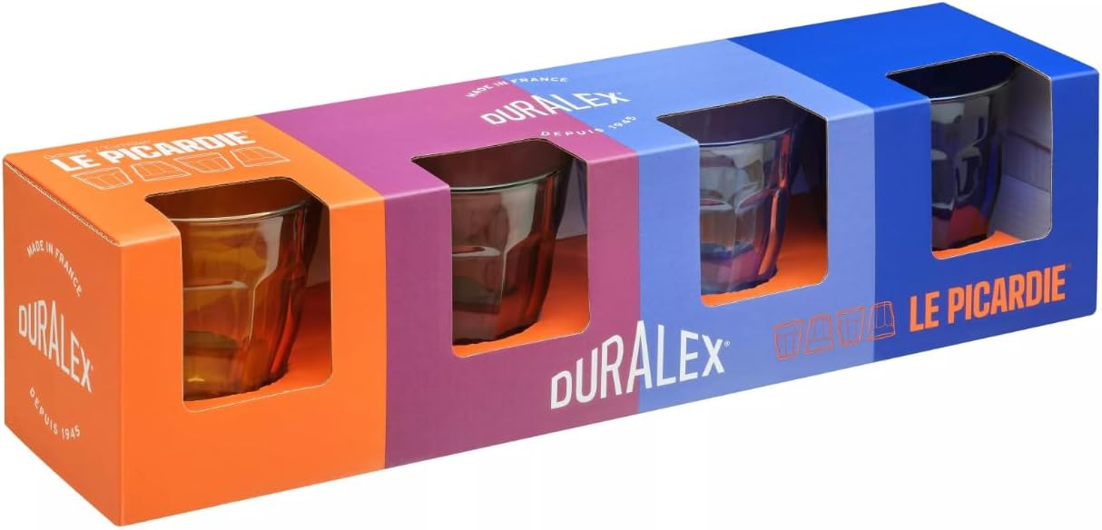 Комплект от 4 чаши от закалено стъкло Duralex® 25 cl (Vermeil/Marine/Sapphire/Plum) – колекция Le Picardie®, елегантна и многофункционална – произведена във Франция