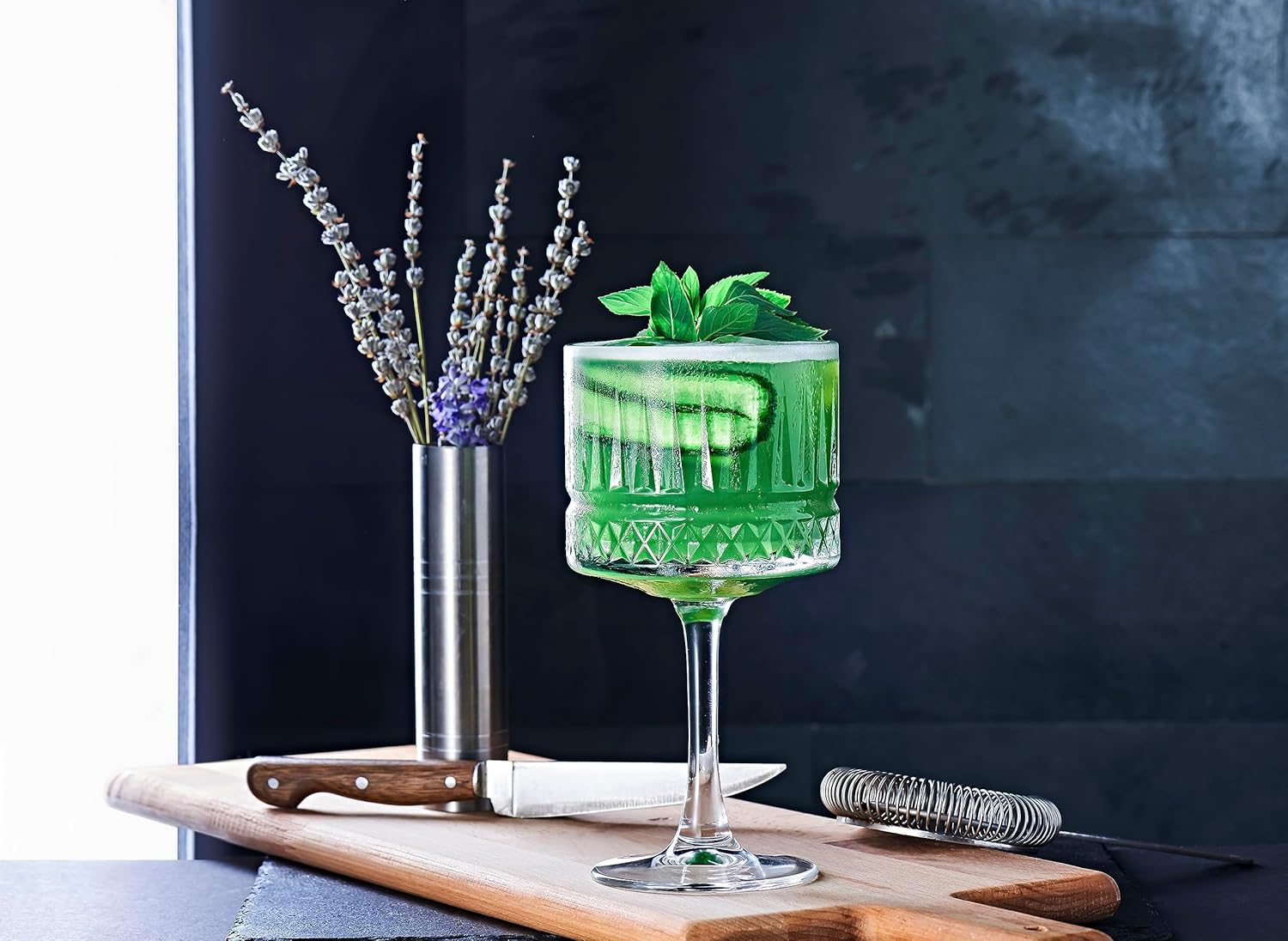 • Висококачествен материал: Изработени от качествено стъкло, тези коктейлни чаши са здрави и издръжливи, идеални за ежедневна употреба.