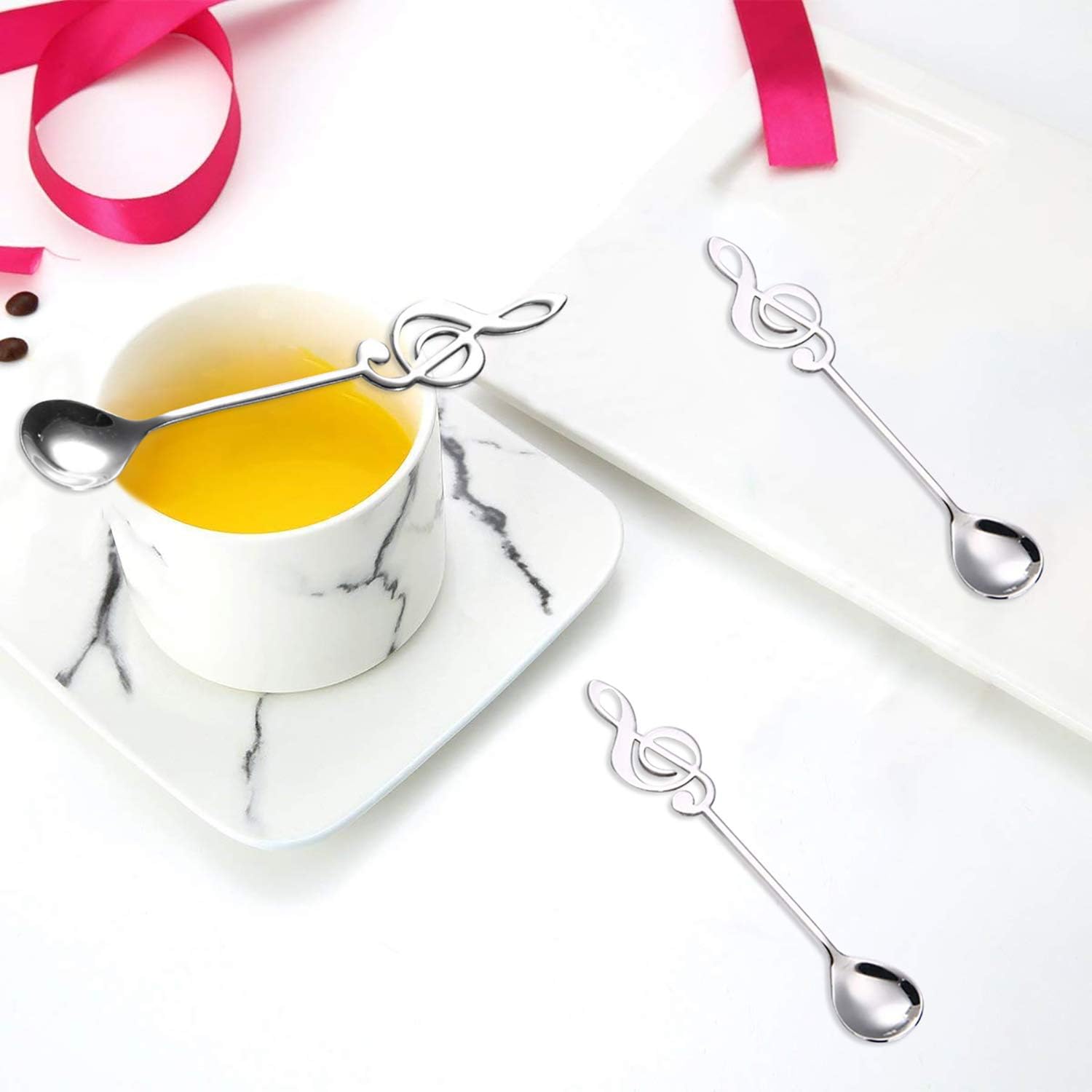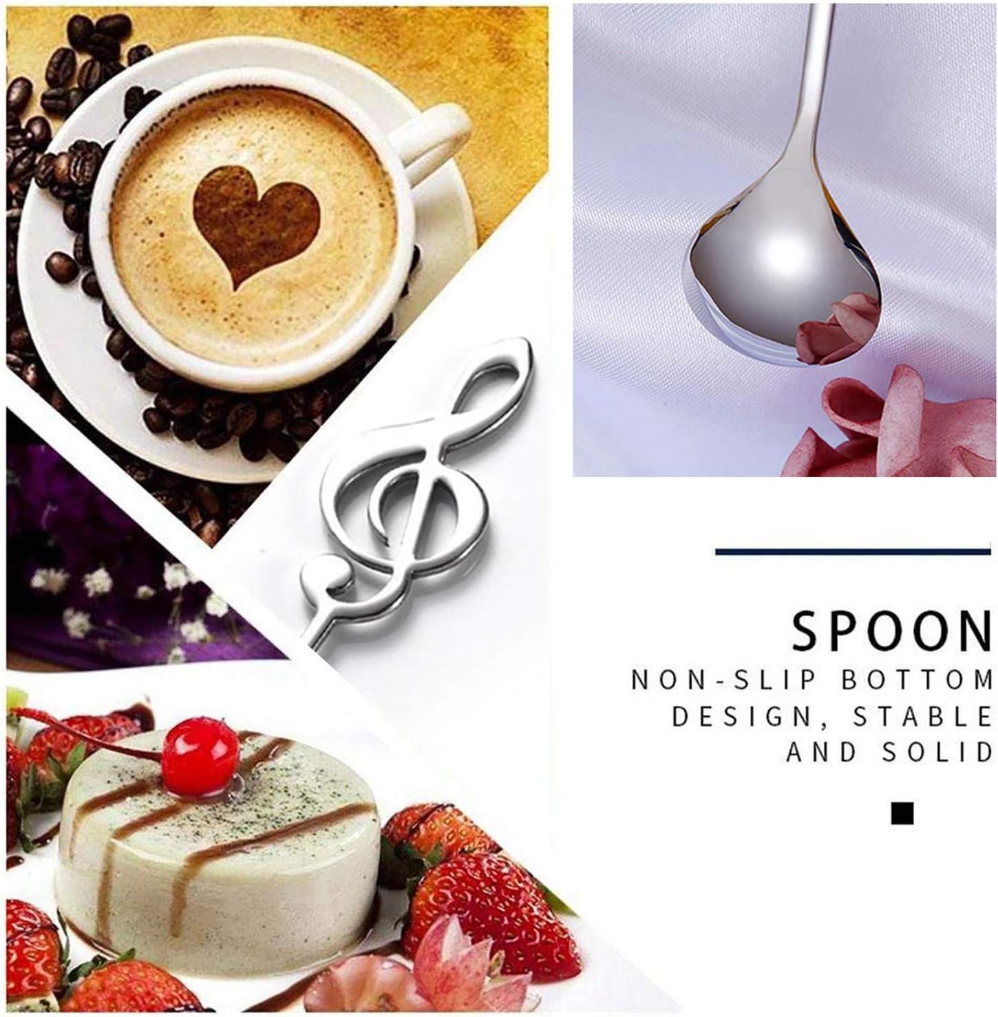 Комплект от 4 десертни лъжици JUSTDOLIFE, декоративни лъжици за бъркане с ноти, лъжици за кафе за домашна употреба (сребърни)