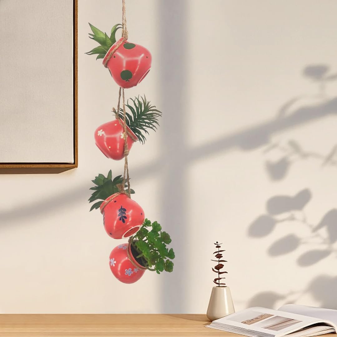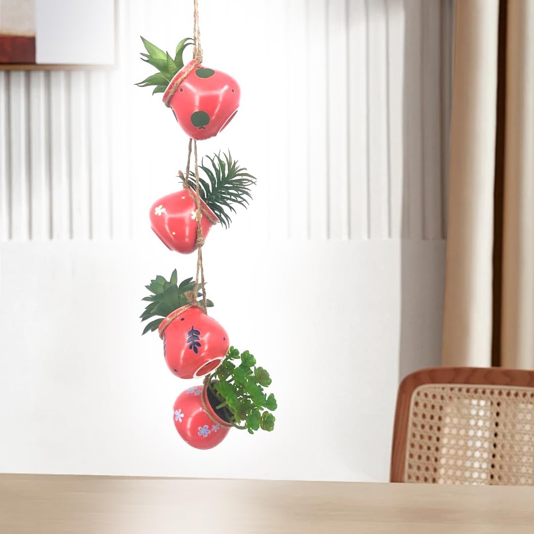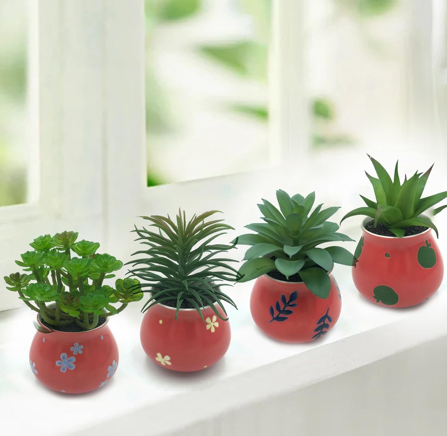 Комплект от 4 изкуствени сукулента в ръчно рисувани керамични саксии PASCH: декорация за хол, баня, офис, малки изкуствени растения