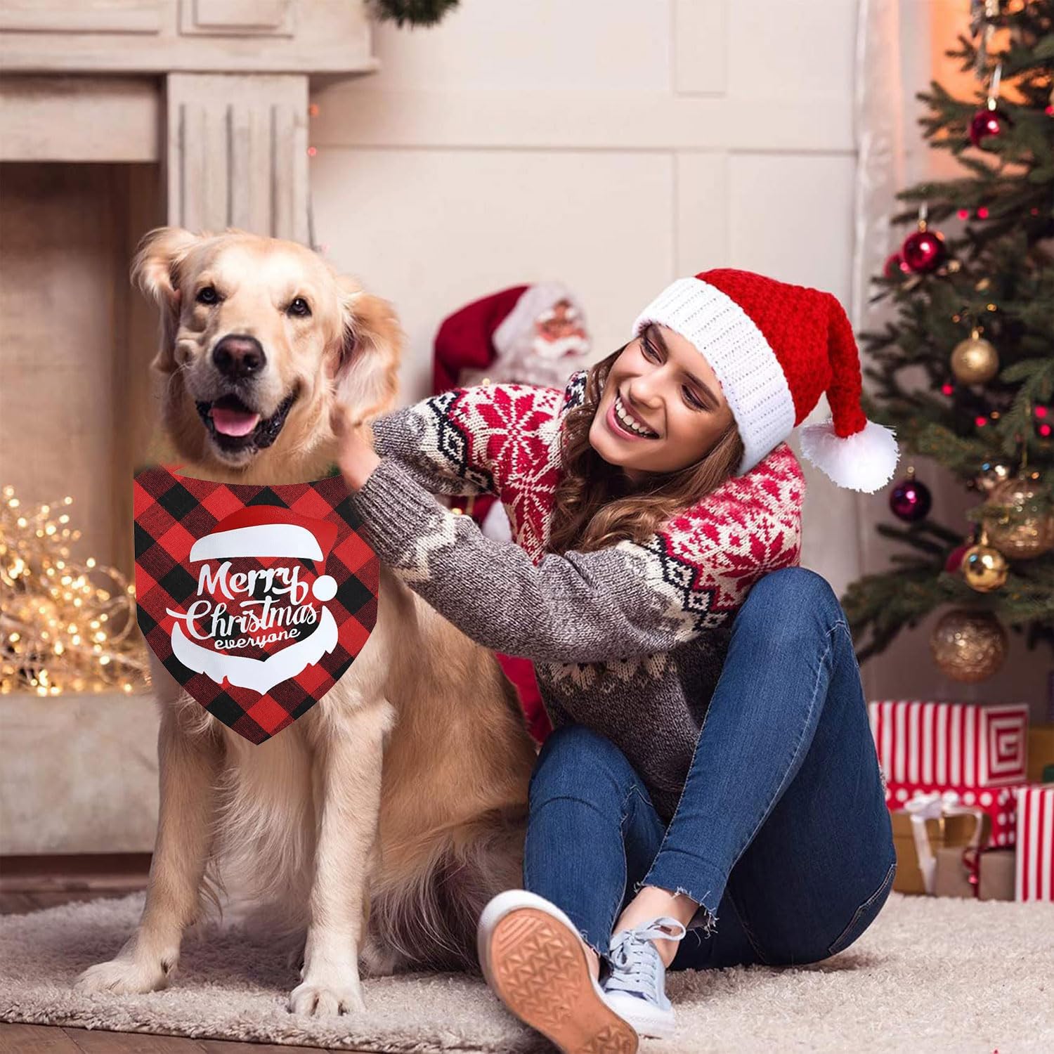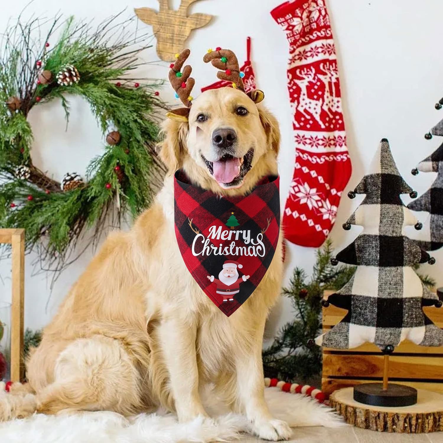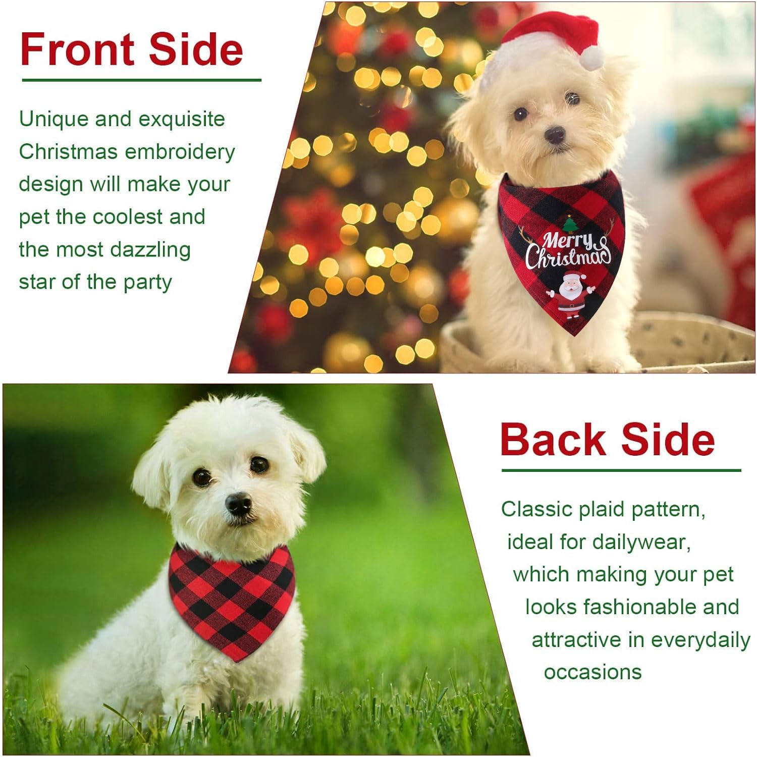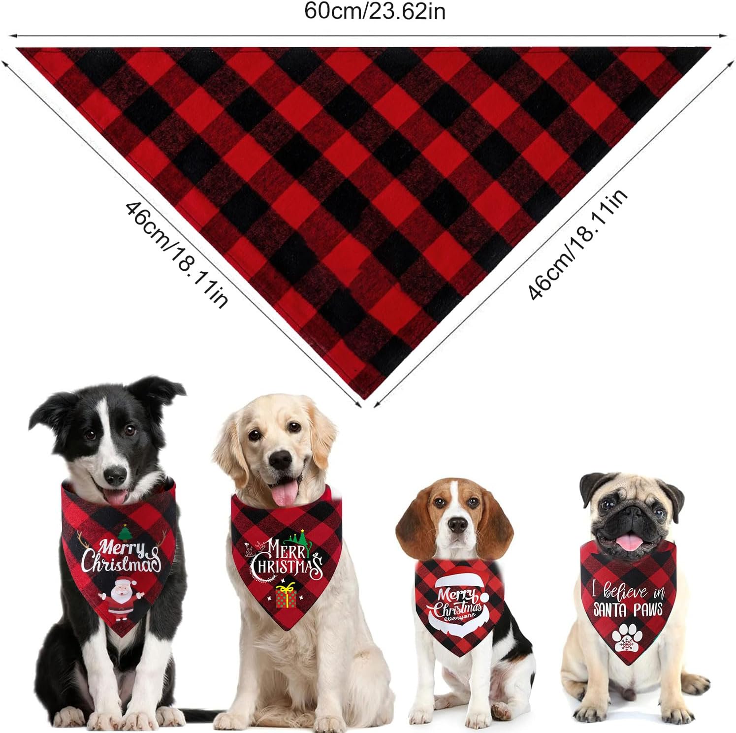 Комплект от 4 коледни бандани за домашни любимци, шал за кучета, коледен шал, регулируем за кученца, коледна бандана за кучета, триъгълен лигавник за домашни любимци, кърпички за врата за кучета, коледен подарък