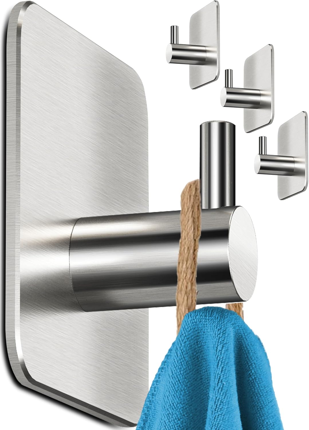 • Самозалепващи се куки от неръждаема стомана, комплект от 4: класическа поставка за кърпи без пробиване, неръждаема стомана със силно залепване; водоустойчива и издръжлива