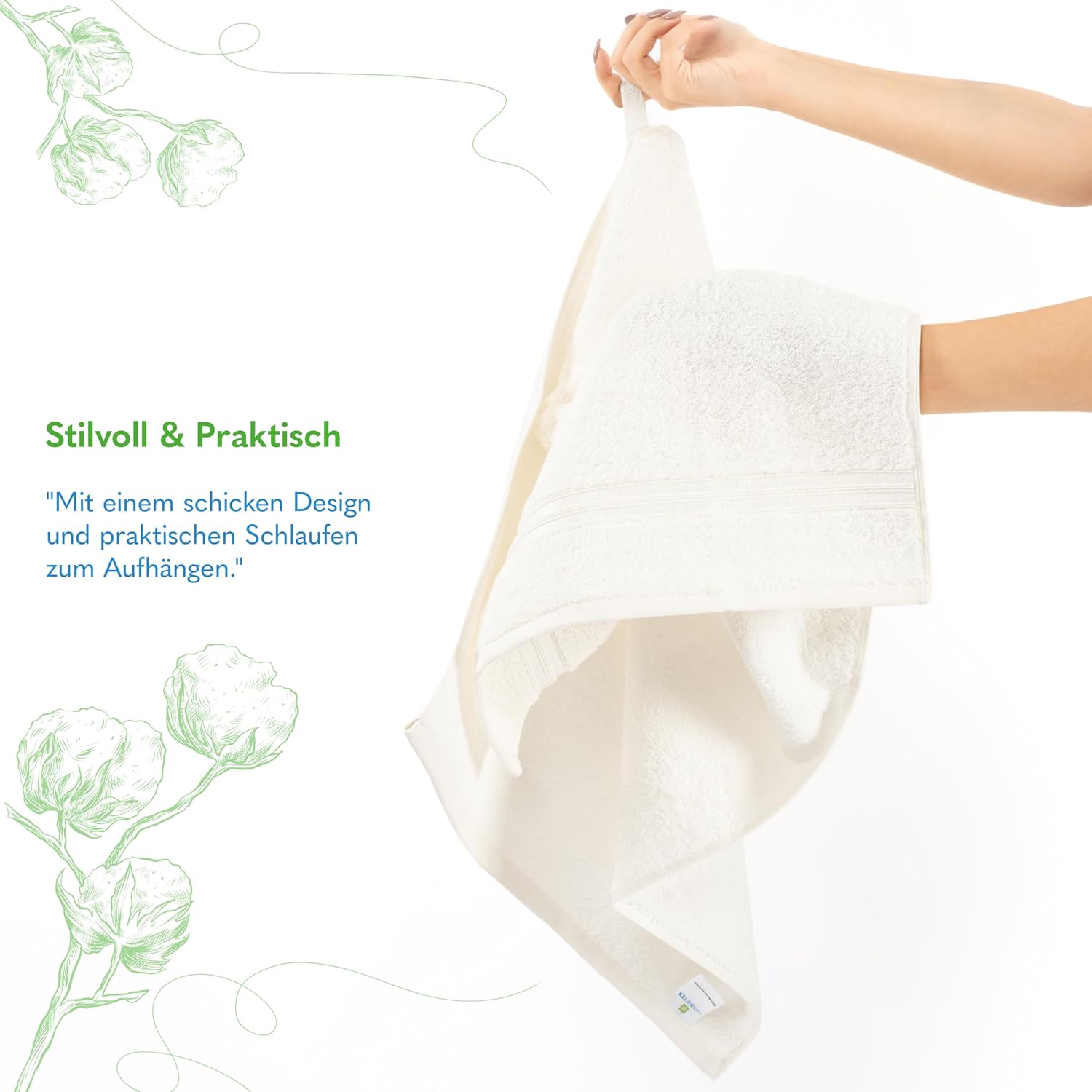 Кърпите HAMMETEX имат интелигентна примка от дългата страна – за разлика от повечето марки. Това осигурява по-лесно окачване, по-бързо съхнене и повече комфорт. Практични, иновативни и идеални за ежедневна употреба!