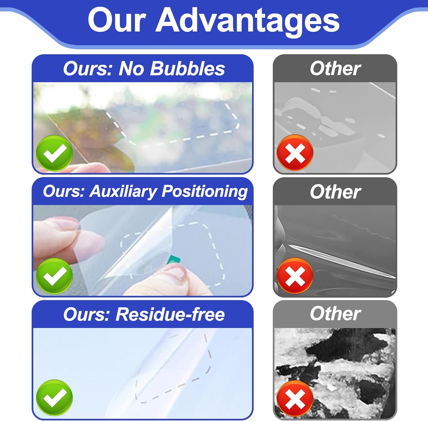 • Прозрачен и дискретен външен вид: Прозрачните антистатични фолиа гарантират, че монтажът остава практически невидим. Това поддържа интериора на вашия автомобил стилен и без неестетични самозалепващи ленти.