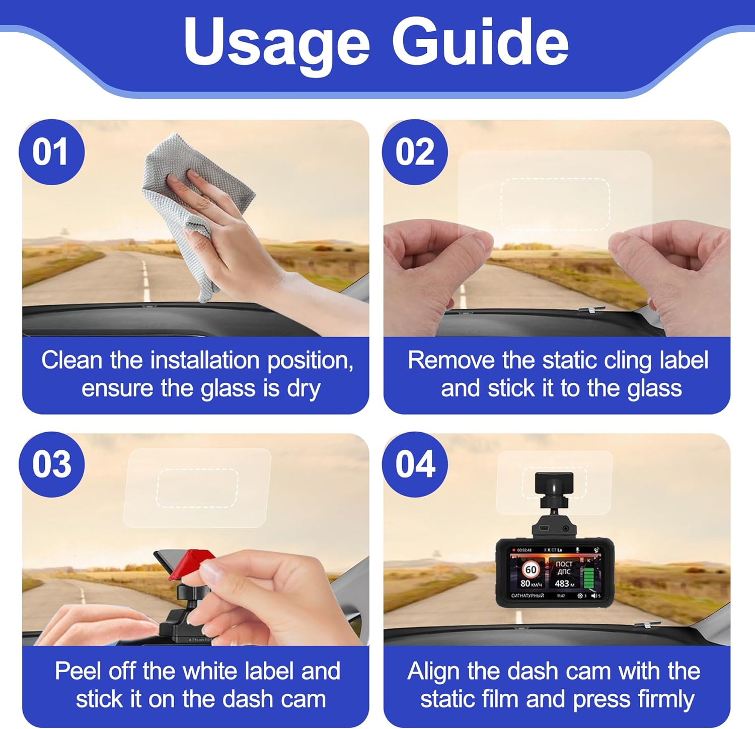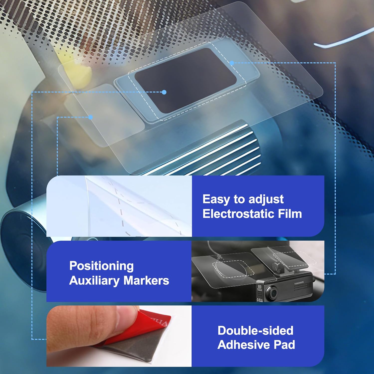• Лесно за поставяне: Лепящата лента за предни стъкла е лесна за поставяне и може да се отстрани без да оставя следи. Това ви позволява бързо да преместите или смените видеорегистратора си, без да оставяте следи.