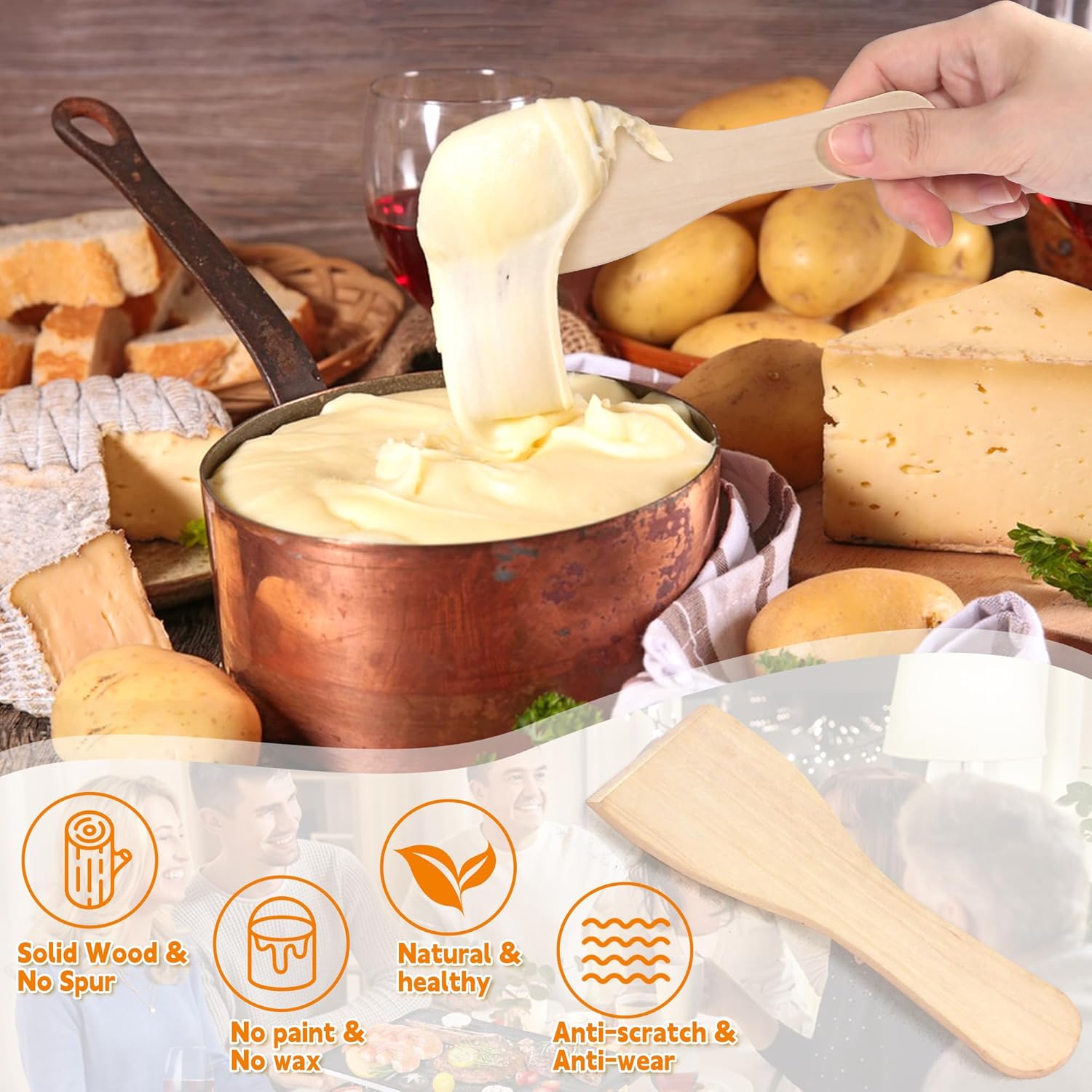 (1) Тиганите за раклет са изработени от 100% висококачествено желязо, безопасни, нетоксични и издръжливи, за многократна употреба.