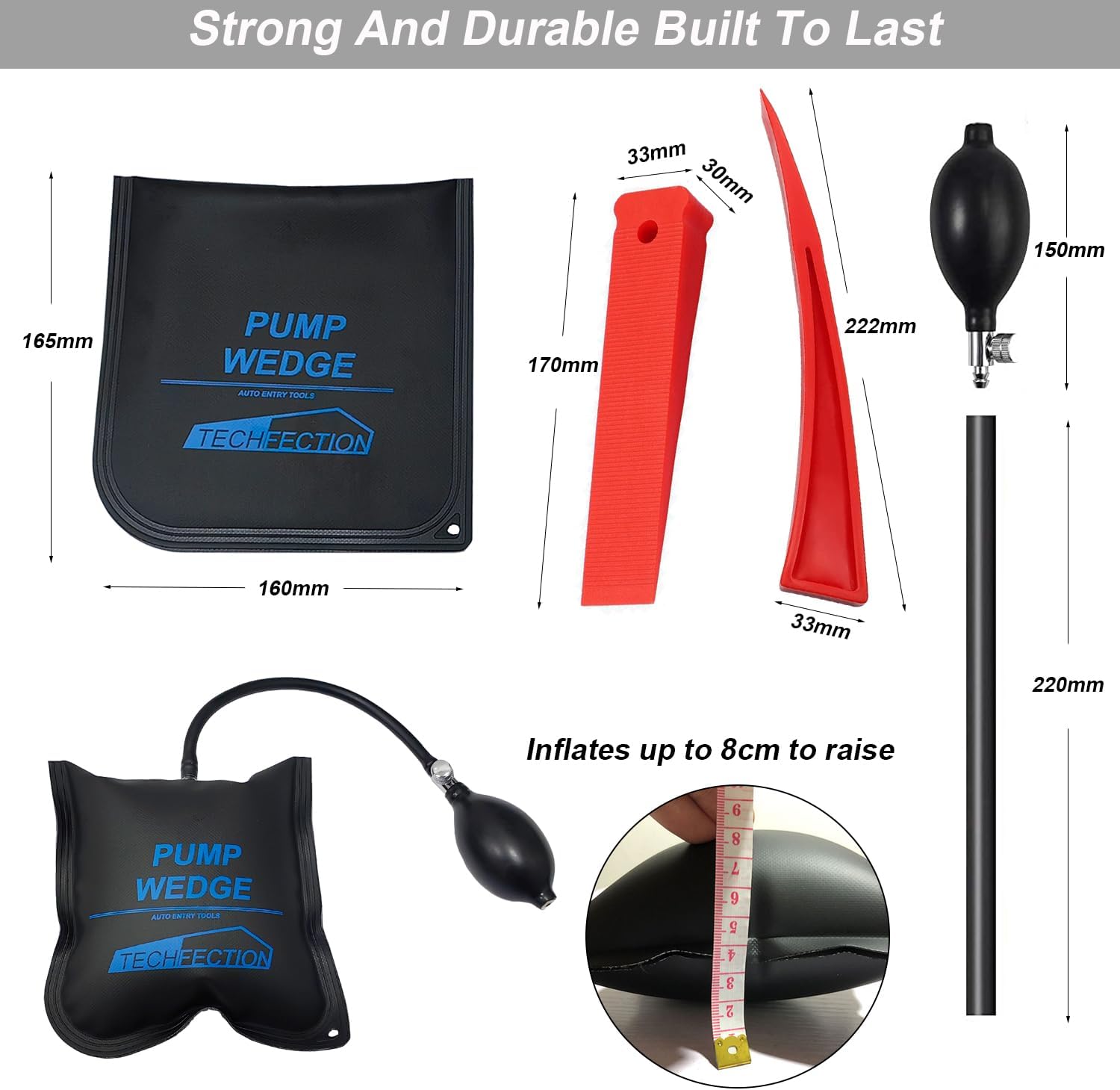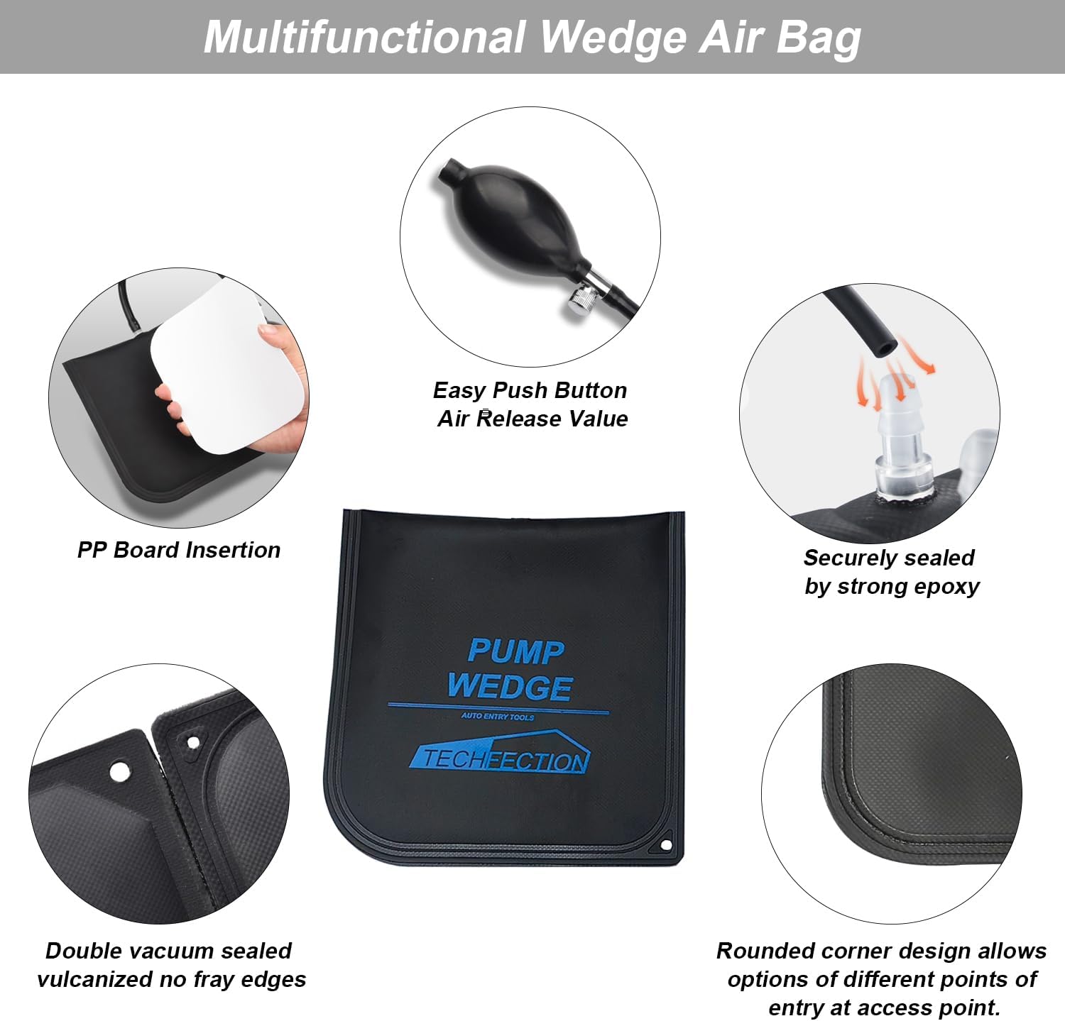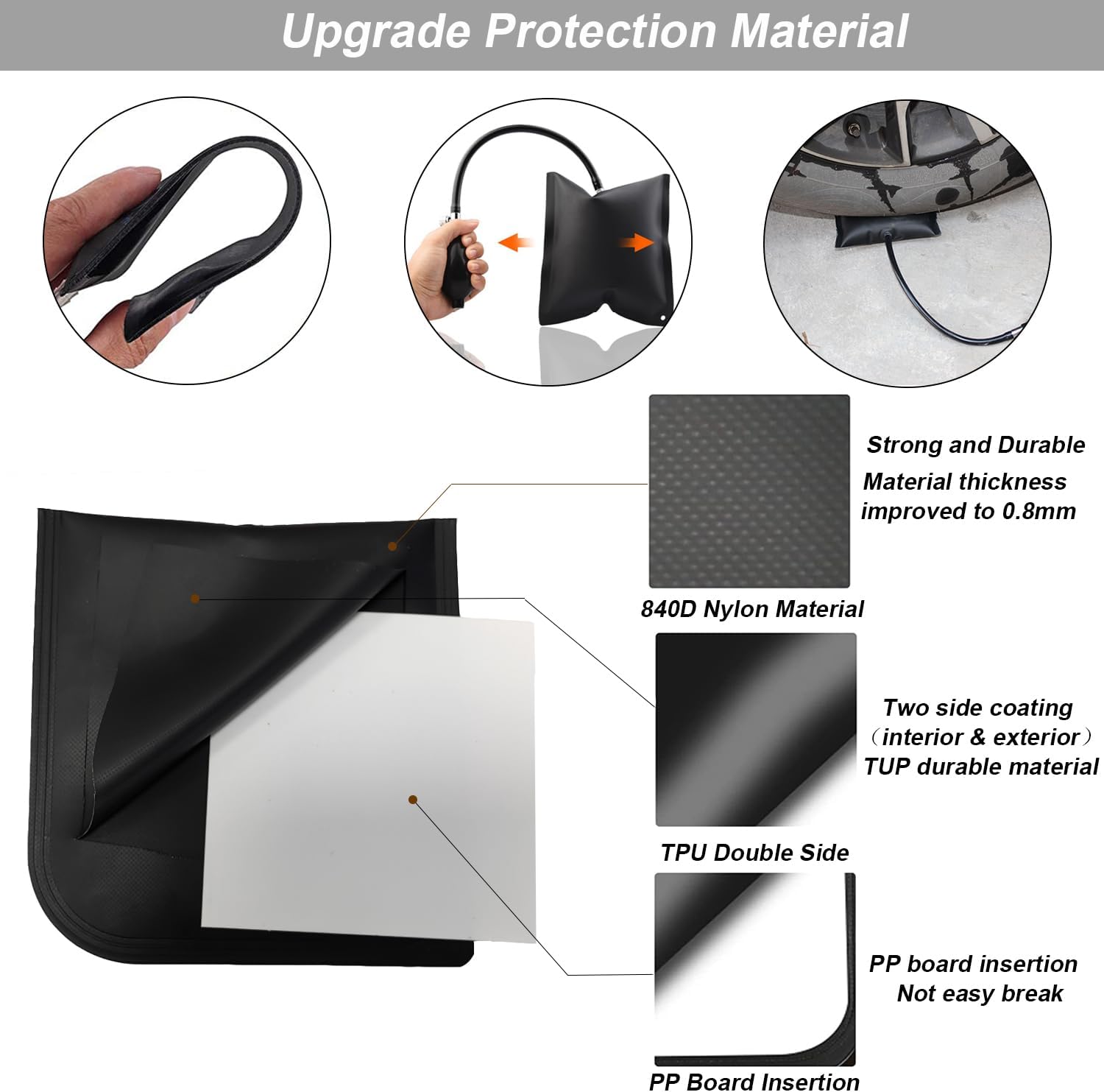 Doppelt vakuumversiegelt, vulkanisiert, keine ausgefransten Kanten. Abgerundete Ecken, steife, haltbare Kanten, glatte Außenseite zum leichteren Einführen, um größeren Belastungen standzuhalten. Der Luftkeil leicht in den kleinen Abstand, mehr Anwendungsmöglichkeiten und Speicherkomfort einsetzen. was es ermöglicht, dass es ohne zu viel Gewalt leichter in Lücken verkeilt werden kann.