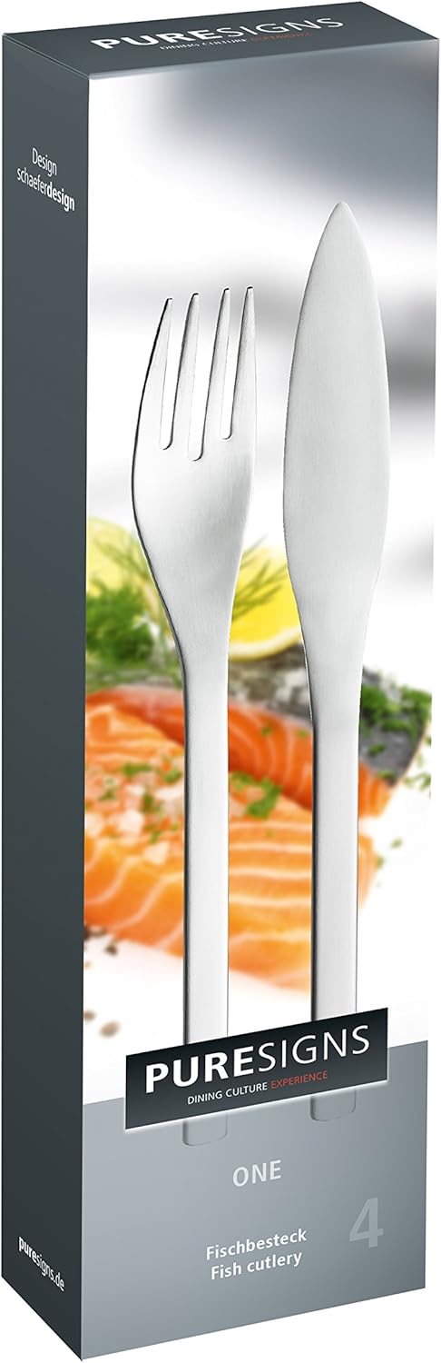 Благодарение на дебелината на материала, приборите за хранене на риба имат солидно усещане, приятно тегло и се усещат особено удобно и висококачествено в ръката.