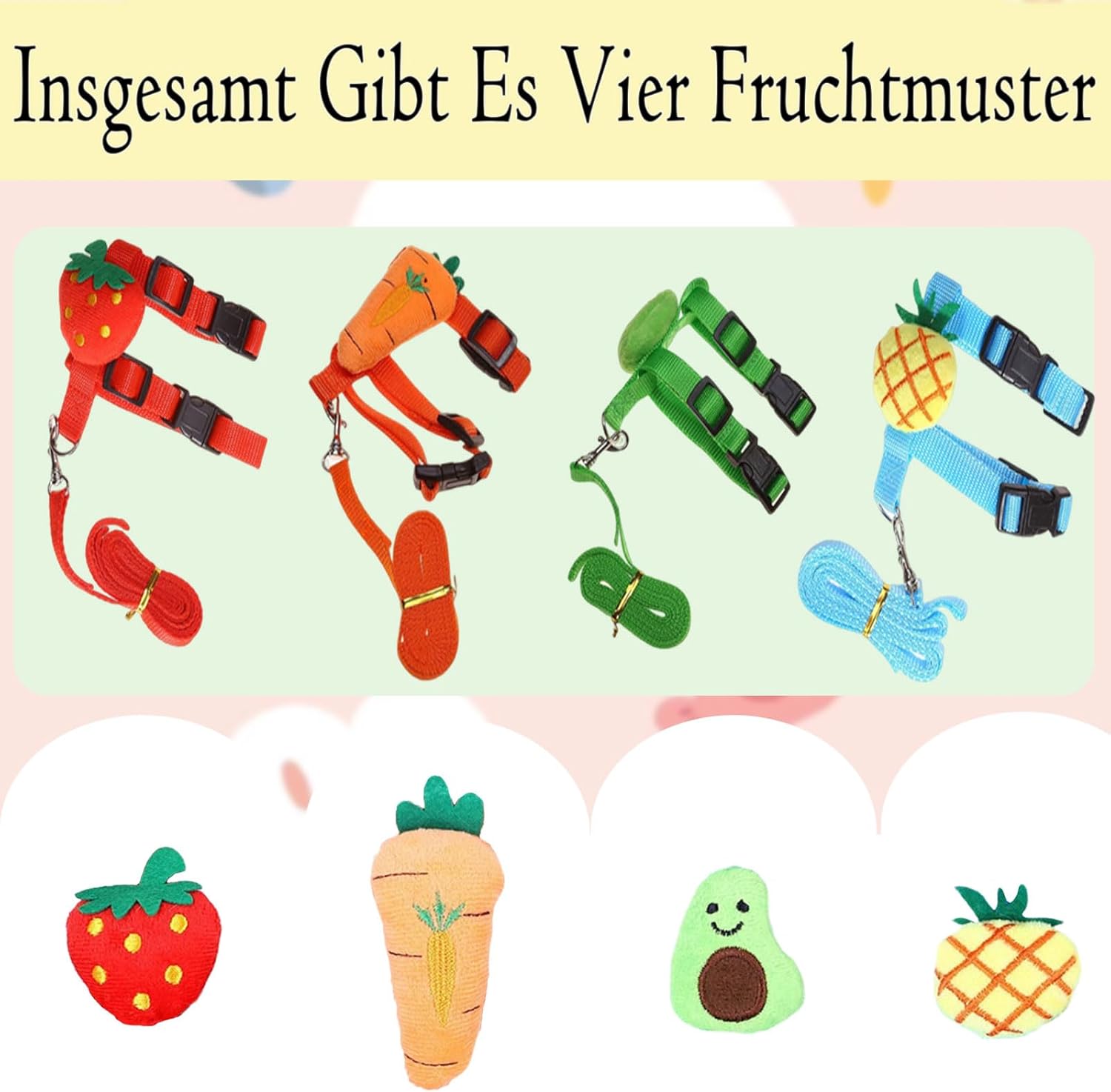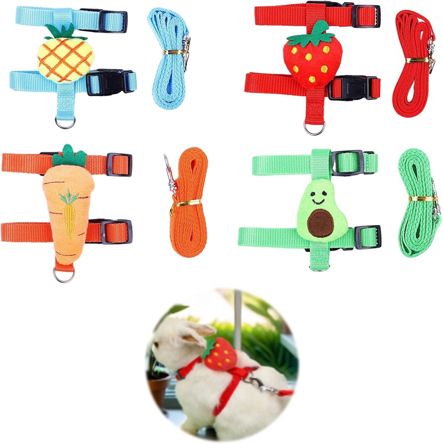 Ще получите 4 броя нагръдник и каишки за зайци в стил ягода, морков, ананас и авокадо, които напълно отговарят на ежедневните нужди и нуждите на домашните любимци от подмяна.