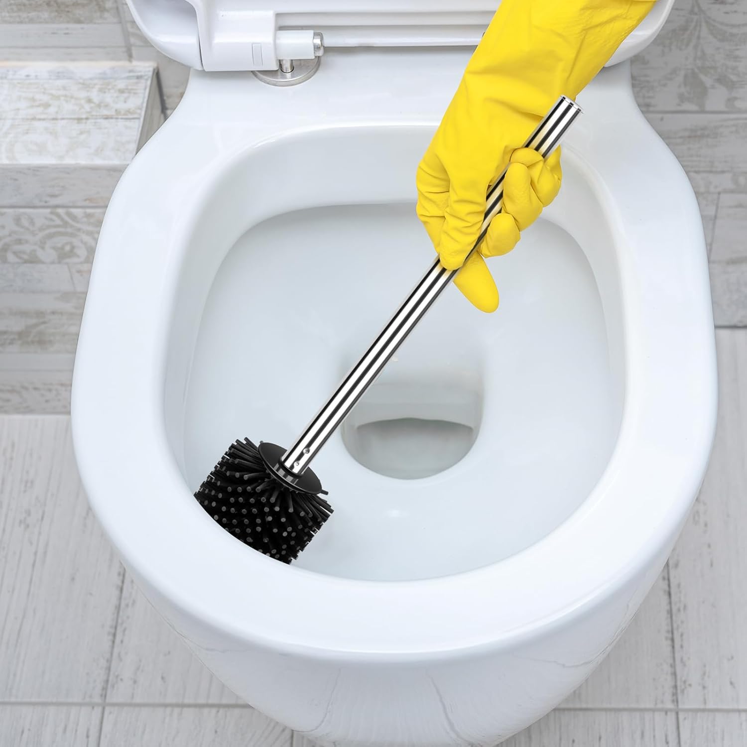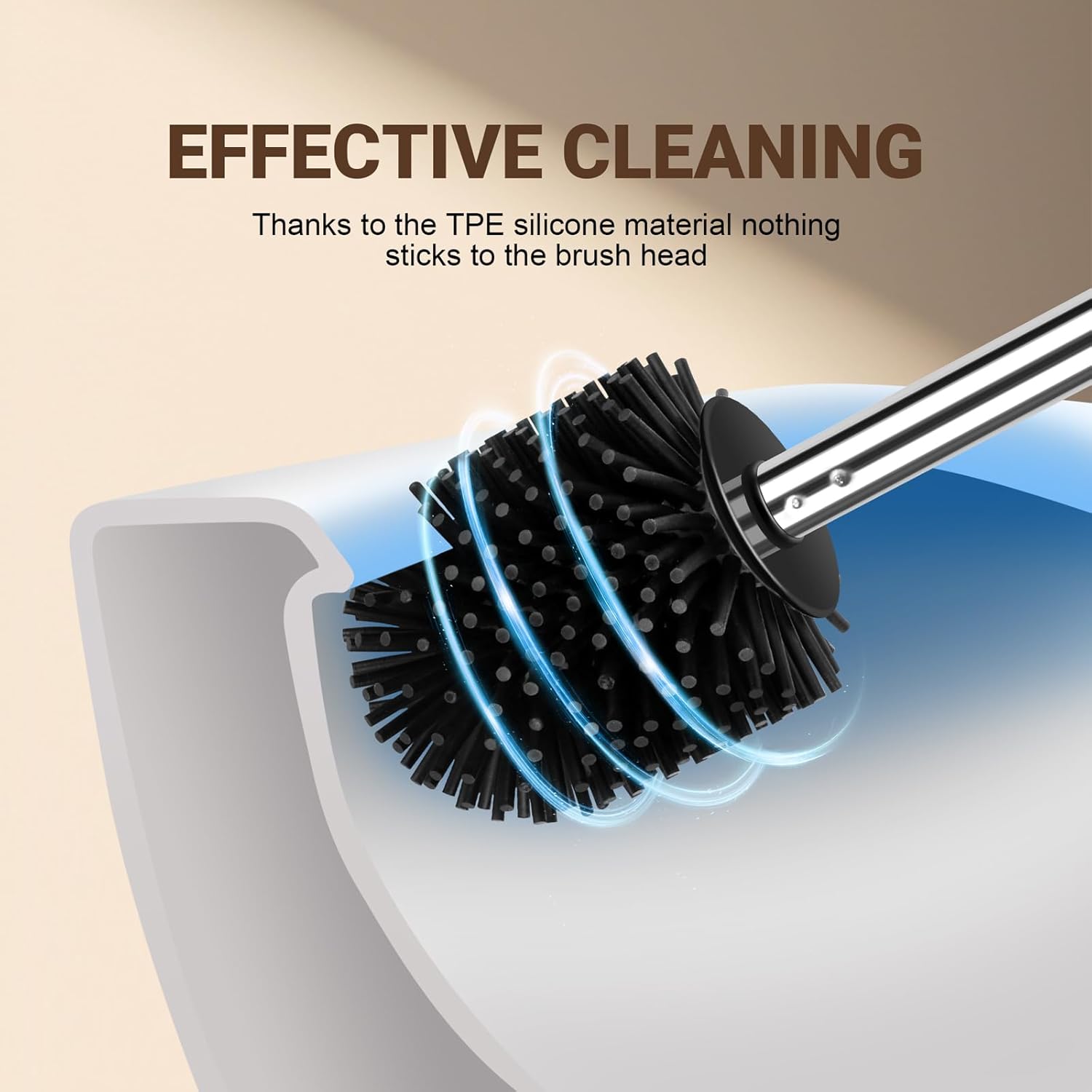 Полусферичен дизайн на главата на четката за цялостно почистване под ръба и други труднодостъпни места, без слепи зони на главата на четката, по-щателно почистване, получавате чиста тоалетна.