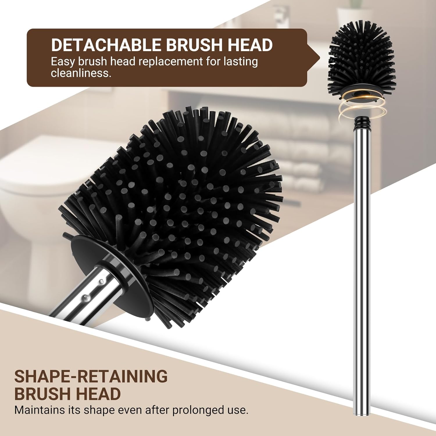 Можете да окачите четката за тоалетна на скрито и проветриво място в банята си, за да я запазите суха и без мирис. Тя не заема твърде много място в банята.