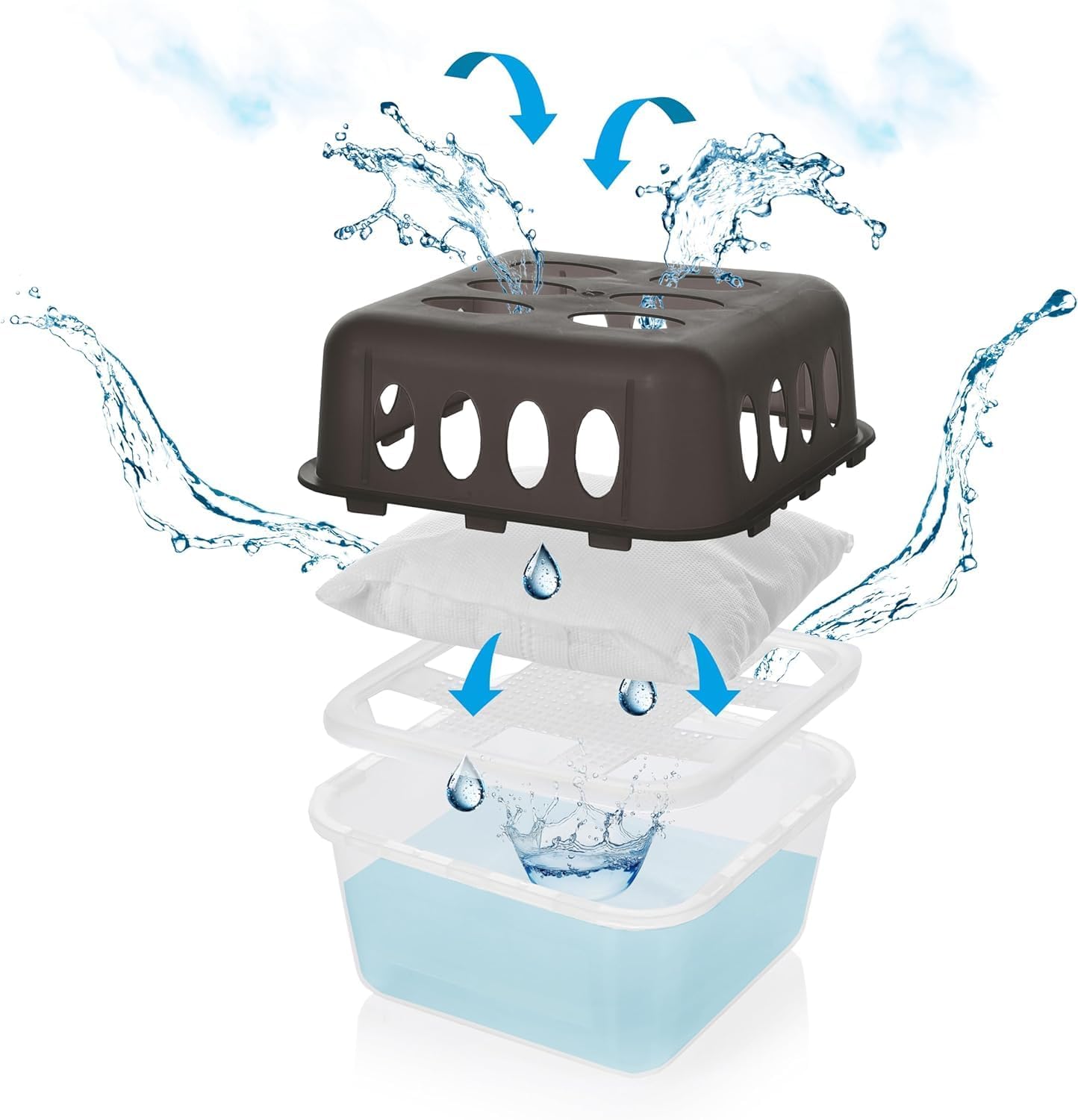 • Просто и безопасно: гранулите за обезвлажняване работят безшумно и не пропускат капки. Свързват влагата надеждно, без химикали или поддръжка и са готови за употреба.