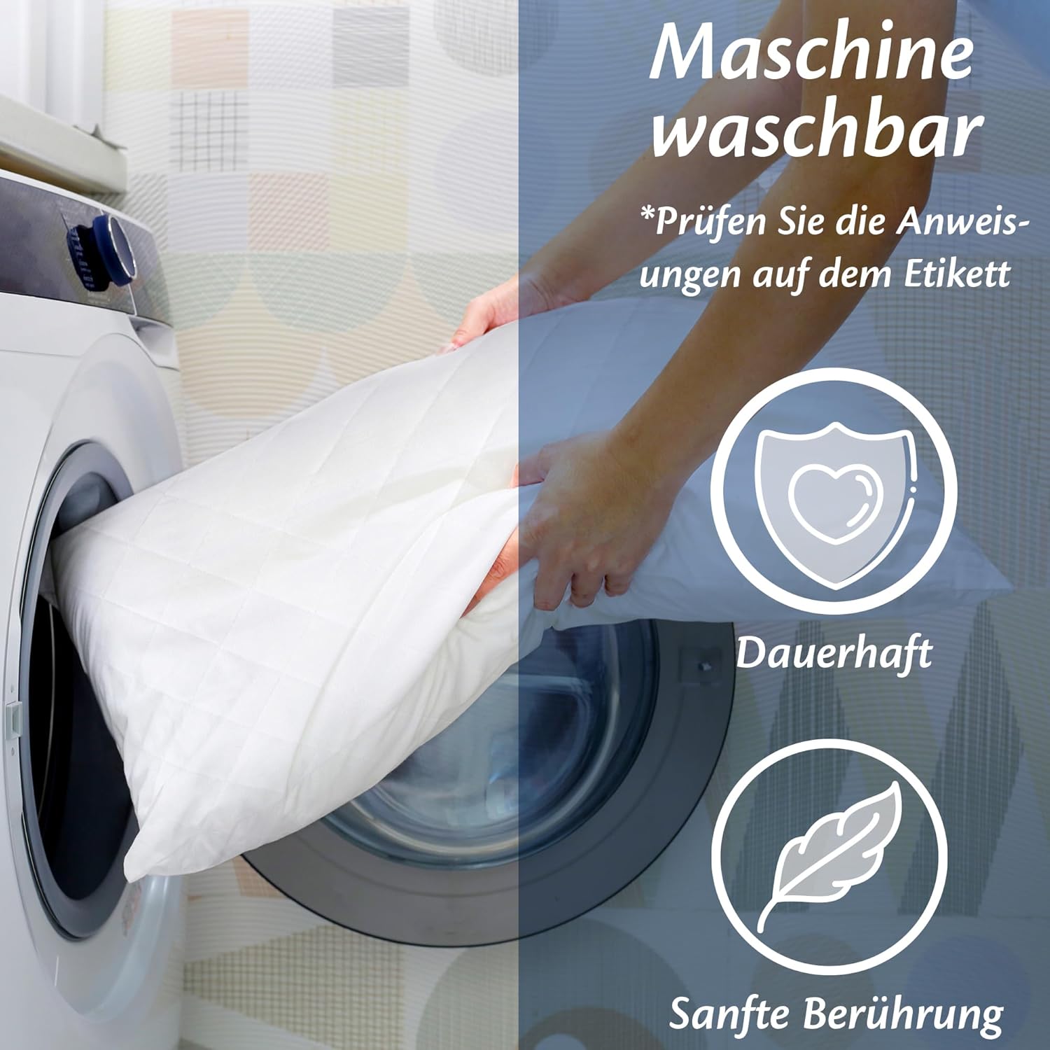 • Вътрешните възглавници са квадратни и са с размери 40 х 40 см (единична възглавница). Те се адаптират идеално към всички външни калъфки за възглавници със същия размер. (Моля, обърнете внимание: външните калъфки за възглавници не са включени)