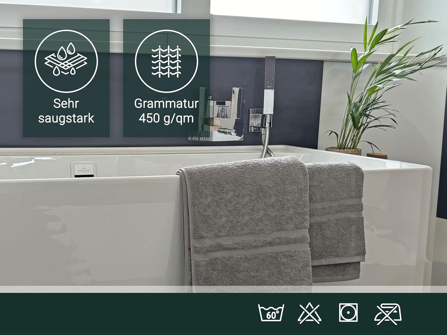 Петната нямат шанс с тези кърпи за миене. Кърпата, продавана милиони пъти в хотелската зона, е лесна за почистване, може да се пере до 95°C, устойчива е на варене и може да се суши в сушилня. Серията Amalfi се предлага в много други размери. От размер приблизително 50 x 100 см, кърпите имат красив и фин раиран бордюр.