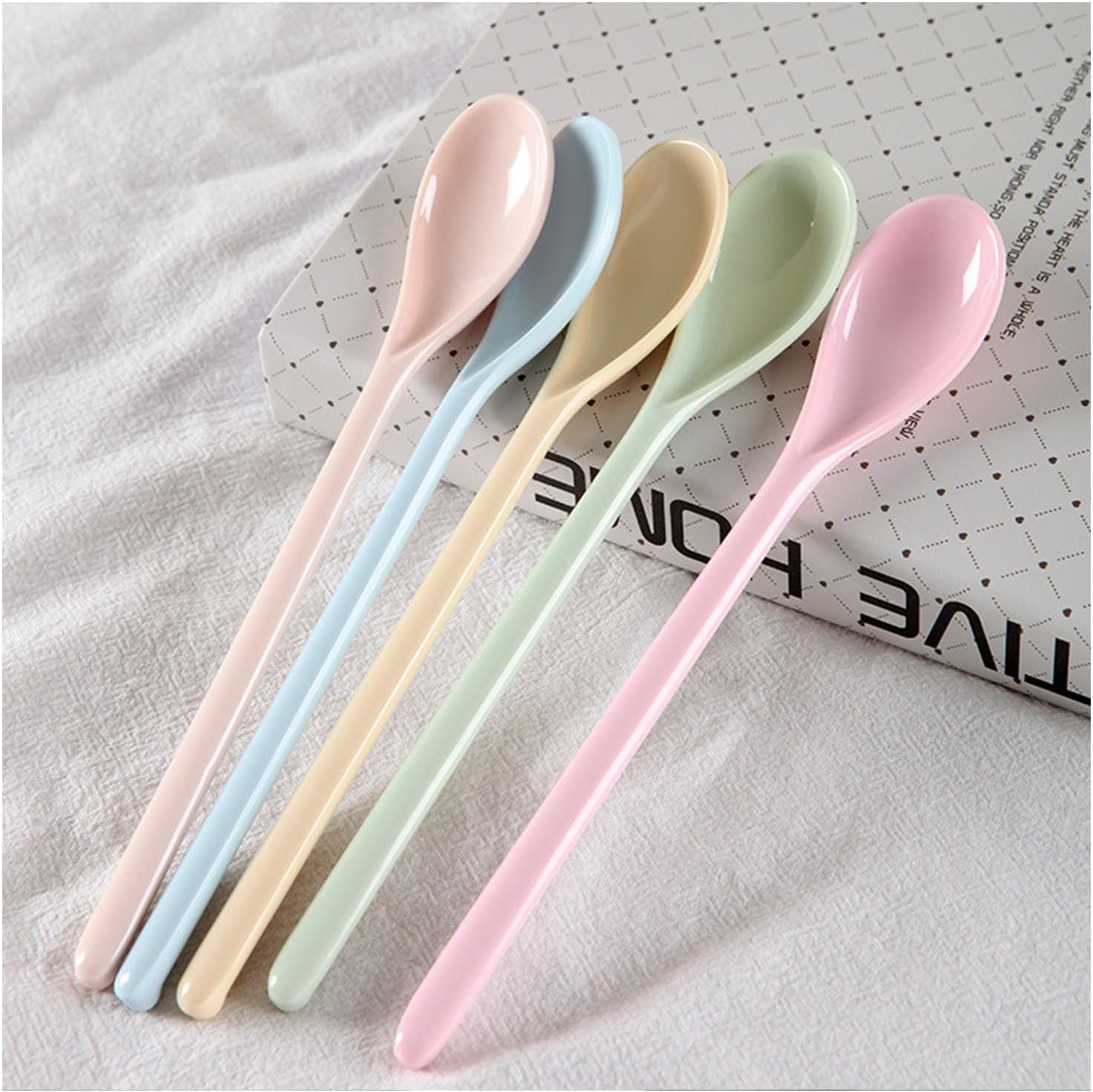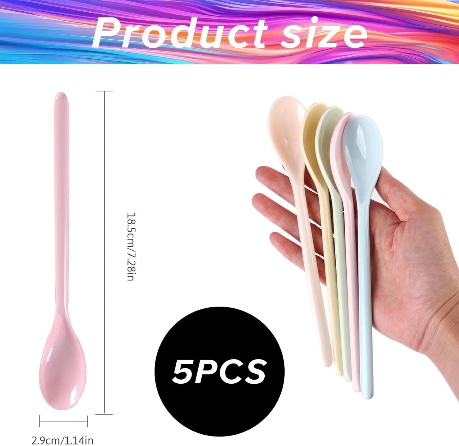 Комплект от 5 пластмасови лъжици, дълги лъжици, пластмасови лъжици за яйца, дълги цветни пластмасови лъжици, меламинови пластмасови лъжици за сладолед, цветни дълги лъжици за конфитюр, лъжици за супа, нечупливи цветни лъжици, лъжици за десертно кафе