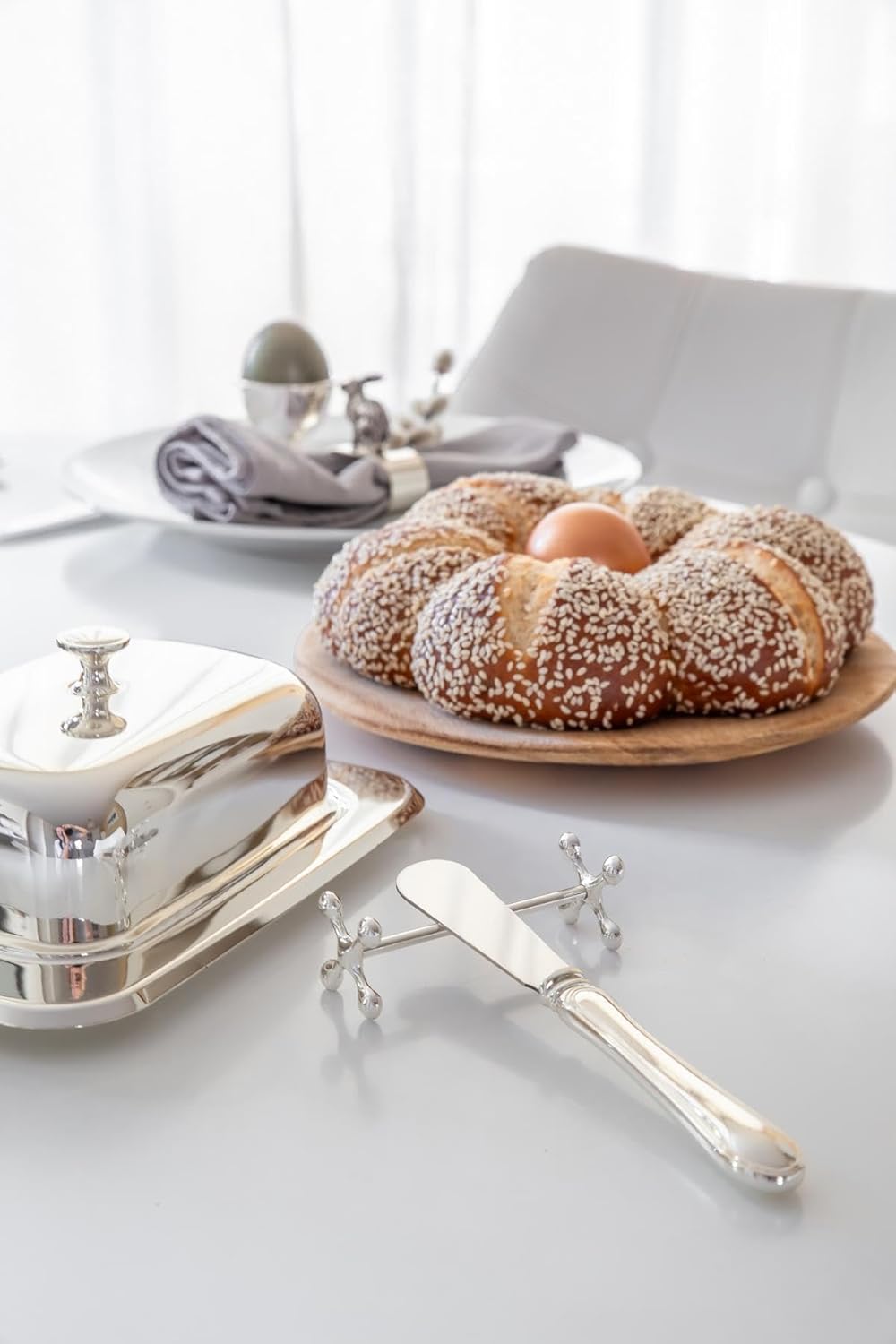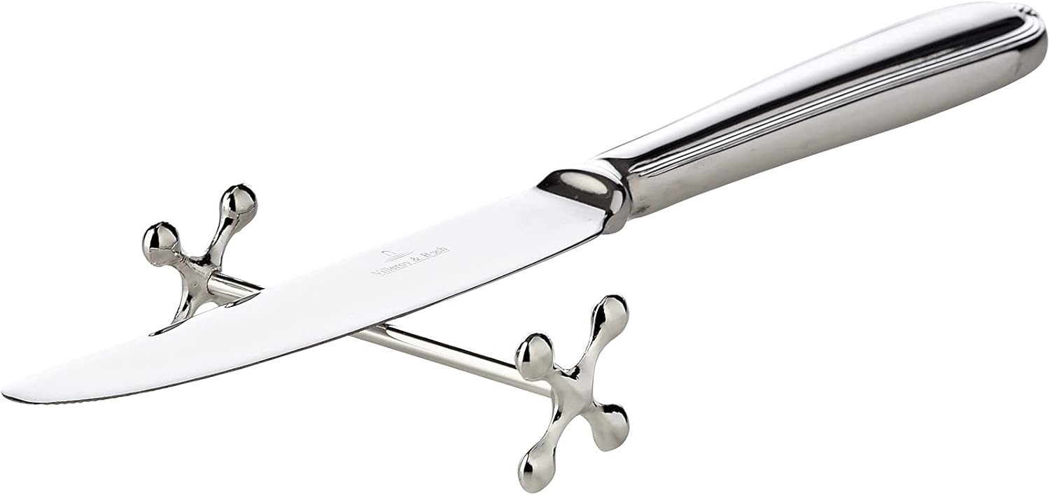 • ПРЕМИУМ КАЧЕСТВО: Тази поставка за ножове, изработена от висококачествен, посребрен материал, гарантира дълъг живот. Тя е устойчива на потъмняване и остава лъскава и красива дори при честа употреба. Идеална е като комплект поставки за ножове за декорация на вашата маса.