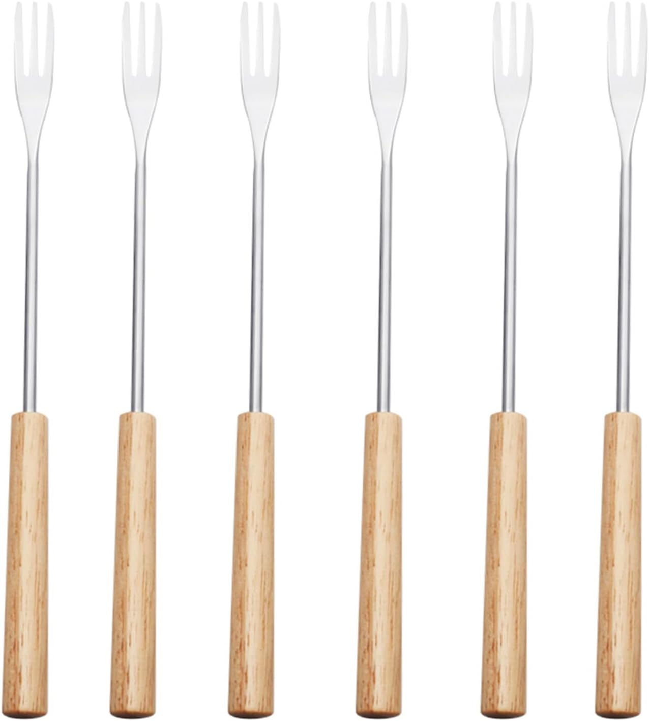 Комплект от 6 вилици за фондю със сирене, комплект за фондю от неръждаема стомана с термоустойчиви дръжки за сирене, шоколад, маршмелоу (цвят дърво)