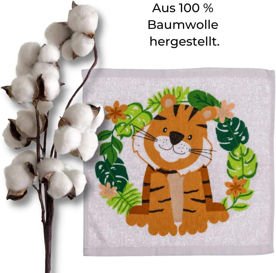 Магическата кърпа е изработена от 100% памук и е особено приятна за детската кожа. Шест различни илюстрации на сафари животни украсяват красивата кърпа.