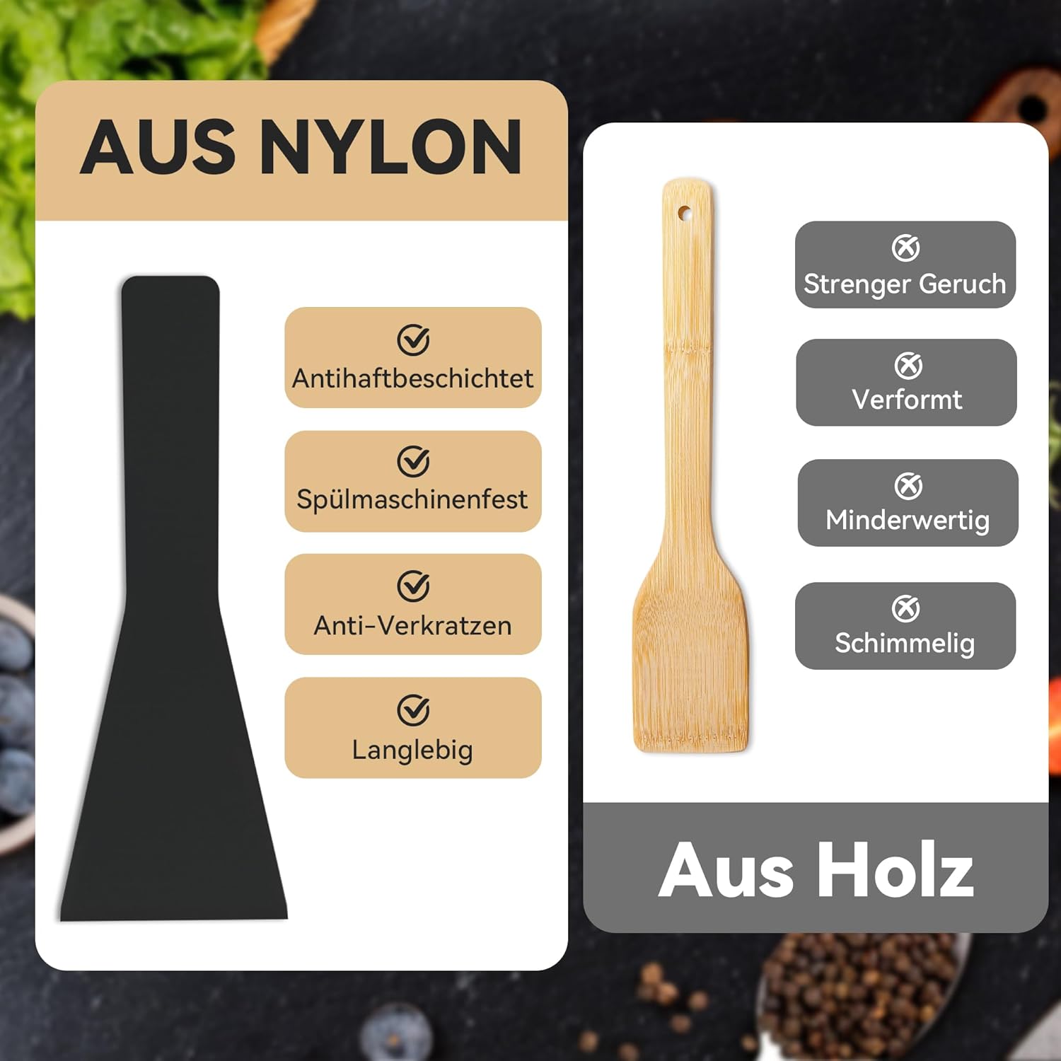 • Премиум качество: мини тиган за раклет, изработен от висококачествен материал, здрав и издръжлив, незалепващ и безопасен за храна. Включената лопатка е изработена от найлон, безопасна, нетоксична и за многократна употреба.