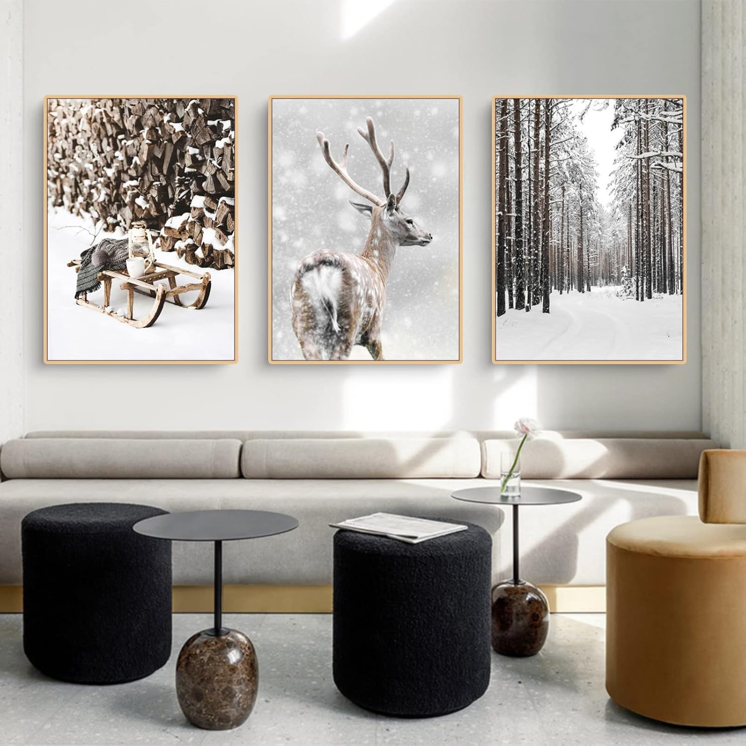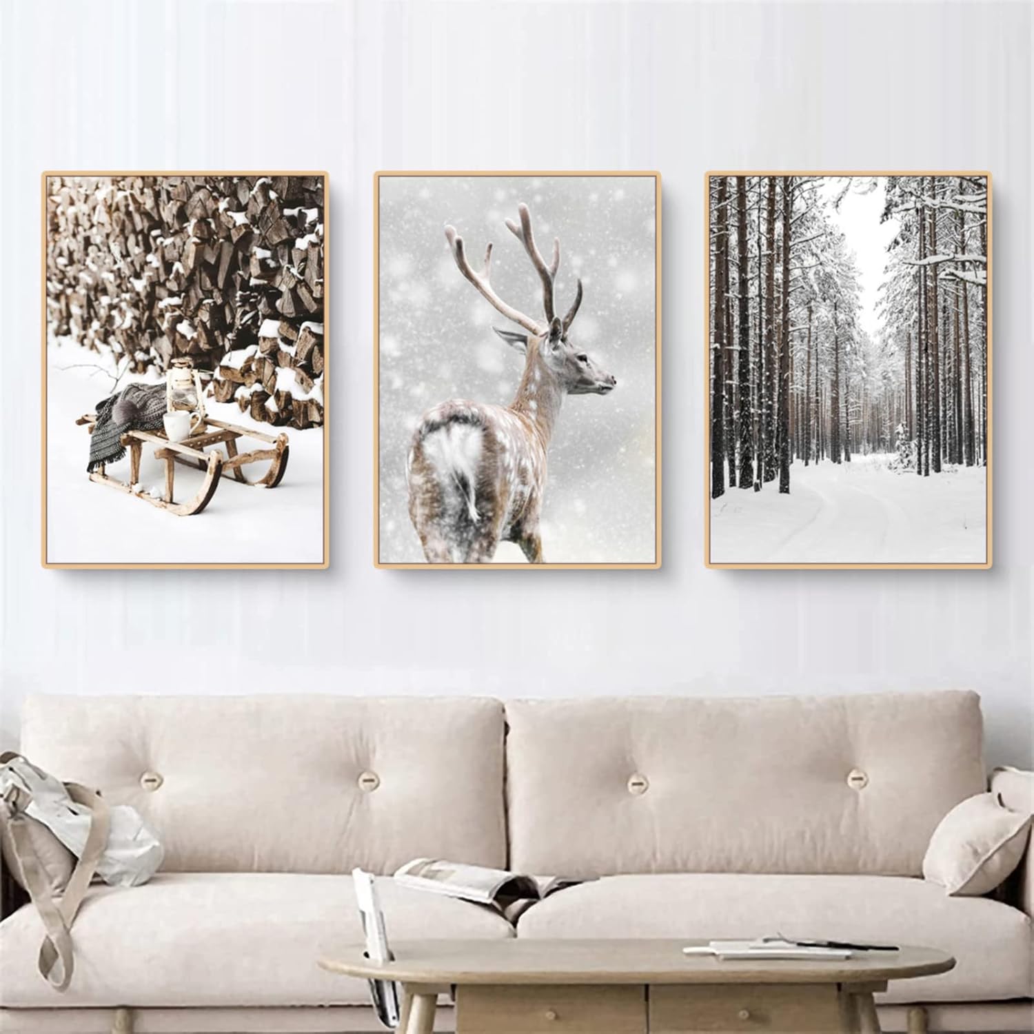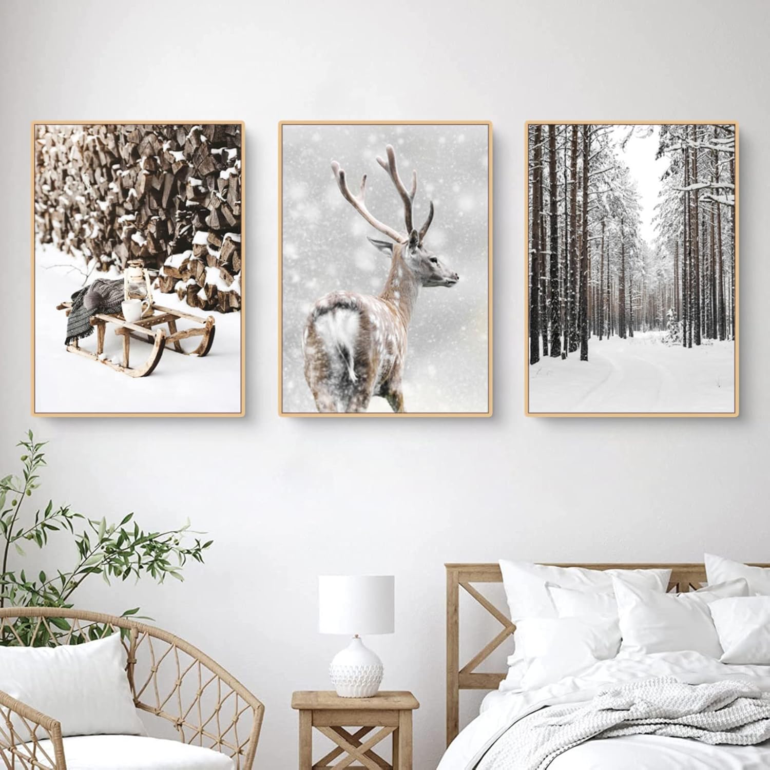Комплект плакати TROYSINC Premium, зимни картини, лосове, дървена къща, гора, стенни картини, картини за хол, модерни стенни декорации, без рамка (Ш, 30 x 40 см)