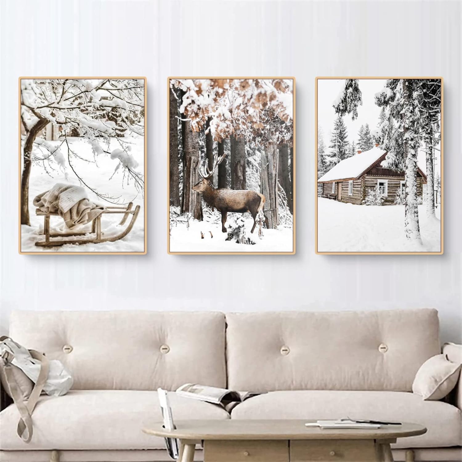 Комплект плакати TROYSINC Premium, зимни картини, лосове, дървена къща, гора, стенни картини, платно за хол, модерни стенни декоративни картини, без рамка (A, 40 x 50 см)