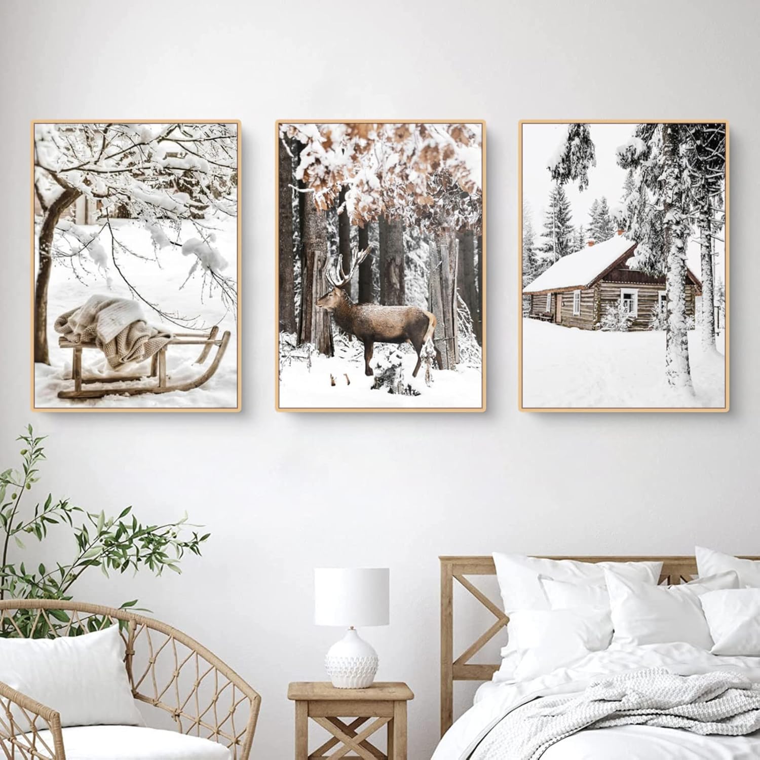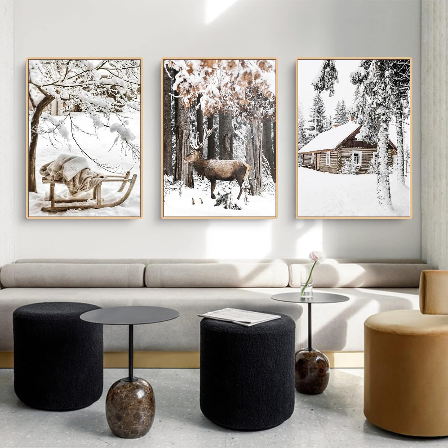 Комплект плакати TROYSINC Premium, зимни картини, лосове, дървена къща, гора, стенни картини, платно за хол, модерни стенни декоративни картини, без рамка (A, 50 x 70 см)