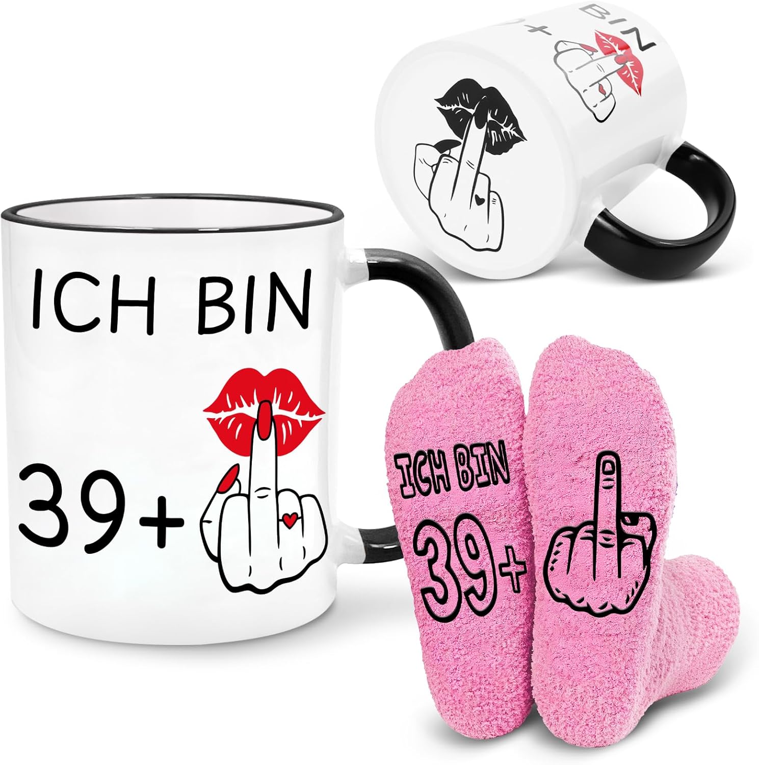 • Иновативен и хумористичен дизайн: Тази чаша за кафе за рожден ден се отличава с уникален дизайн от двете страни и отдолу, което я прави перфектен и забавен подарък за рожден ден за някой специален. Допълнена е от нашите забавни чорапи с щампа „Аз съм 39 +1“, които подсилват темата със същия дизайн.