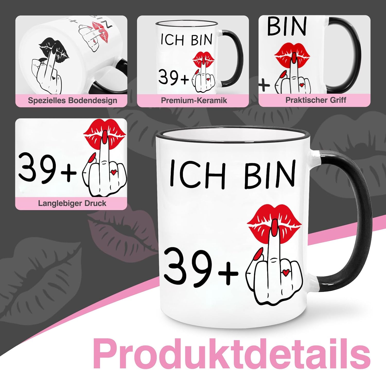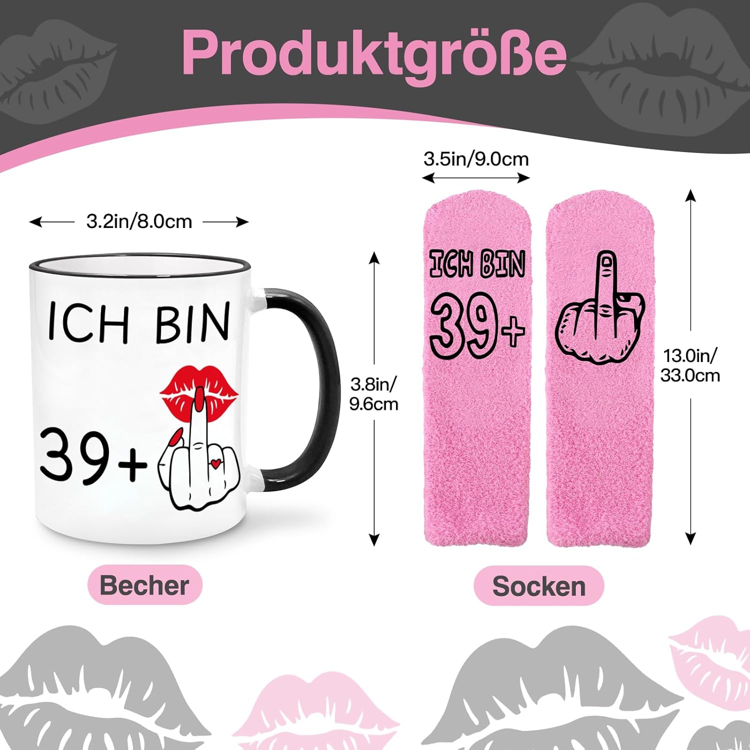 • Иновативен и хумористичен дизайн: Тази чаша за кафе за рожден ден се отличава с уникален дизайн от двете страни и отдолу, което я прави перфектен и забавен подарък за рожден ден за някой специален. Допълнена е от нашите забавни чорапи с щампа „Аз съм 39 +1“, които подсилват темата със същия дизайн.
