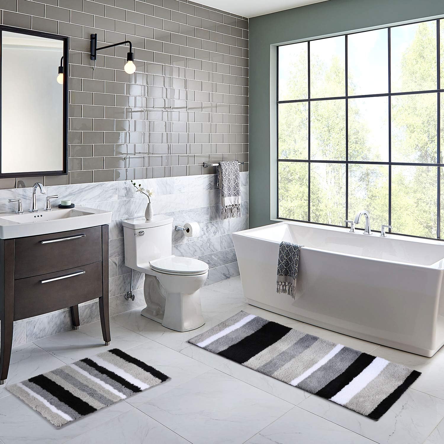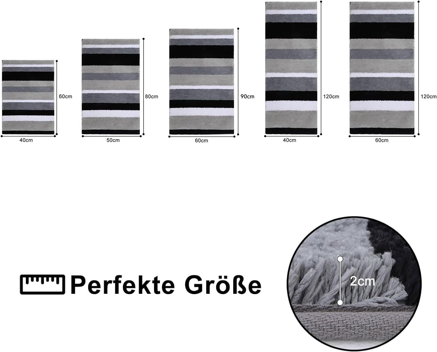 • Широко използвана: тази постелка за баня се предлага в 4 размера: 40 x 60 см, 50 x 80 см, 40 x 120 см и 60 x 120 см. Предлагаме и 2 комбинирани размера: 40 x 60 см + 50 x 80 см и 40 x 60 см + 40 x 120 см. Класическият раиран дизайн означава, че те лесно се вписват във всеки домашен декор и могат да се използват в бани, кухни, спални, дневни, входове и дори като килими за домашни любимци и др.