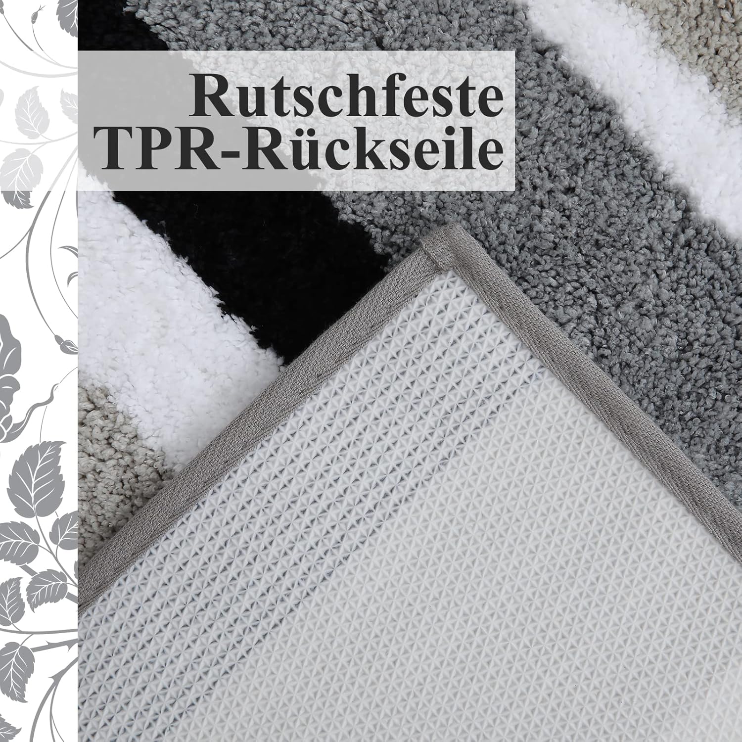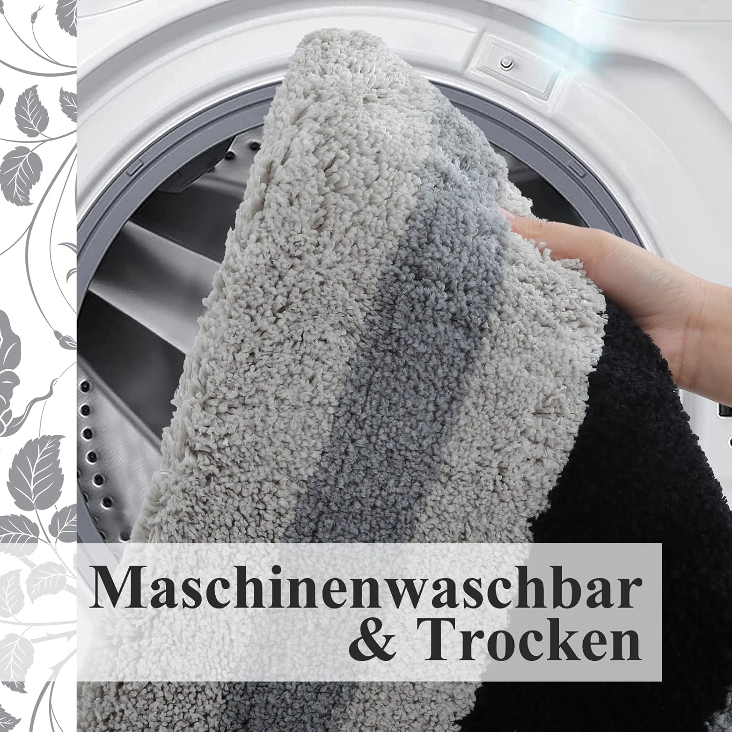 Комплект постелки за баня Homaxy с неплъзгащи се елементи, 2 броя, абсорбиращи постелки за баня от микрофибър, меки постелки за баня с висок косъм - 40 x 60 см + 40 x 120 см, черно/сиво