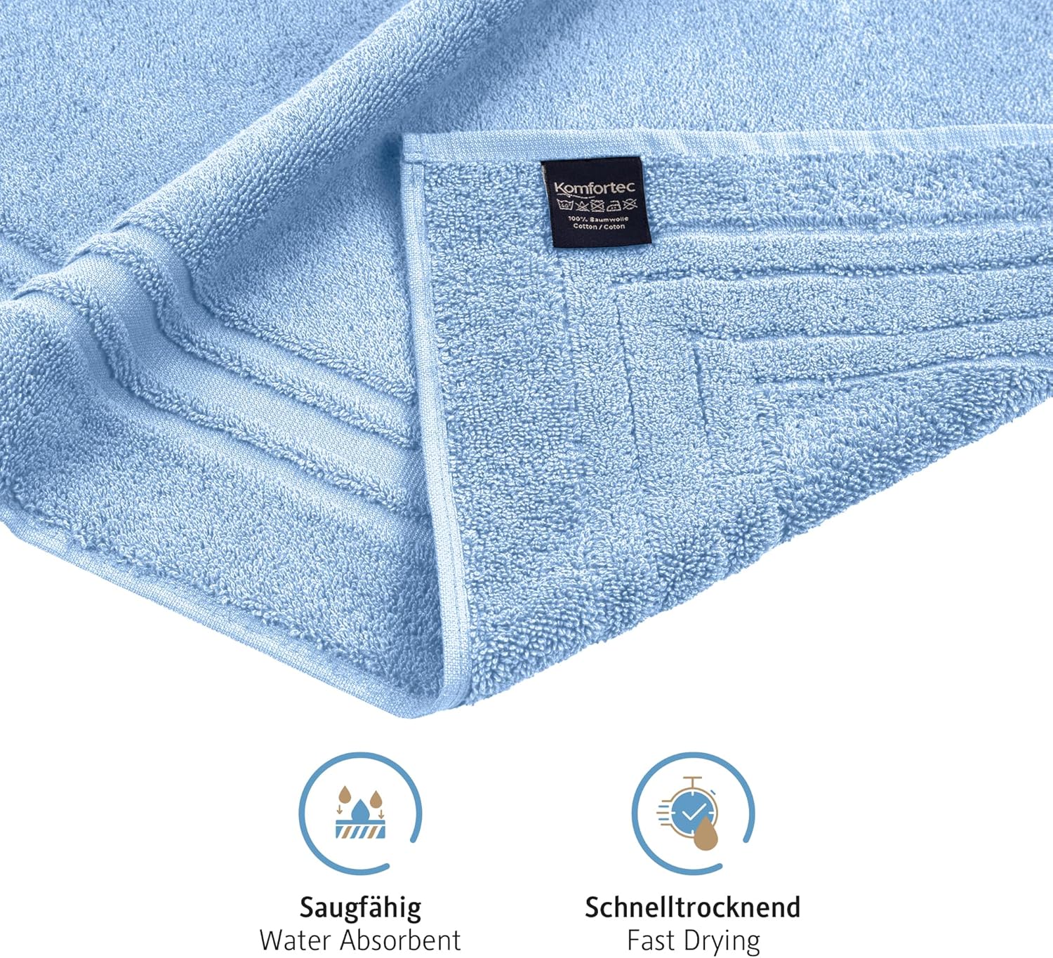Кърпите за крака Komfortec са произведени от тъкан с плътност 600 гр/м². По този начин те абсорбират повече вода и съхнат бързо.
