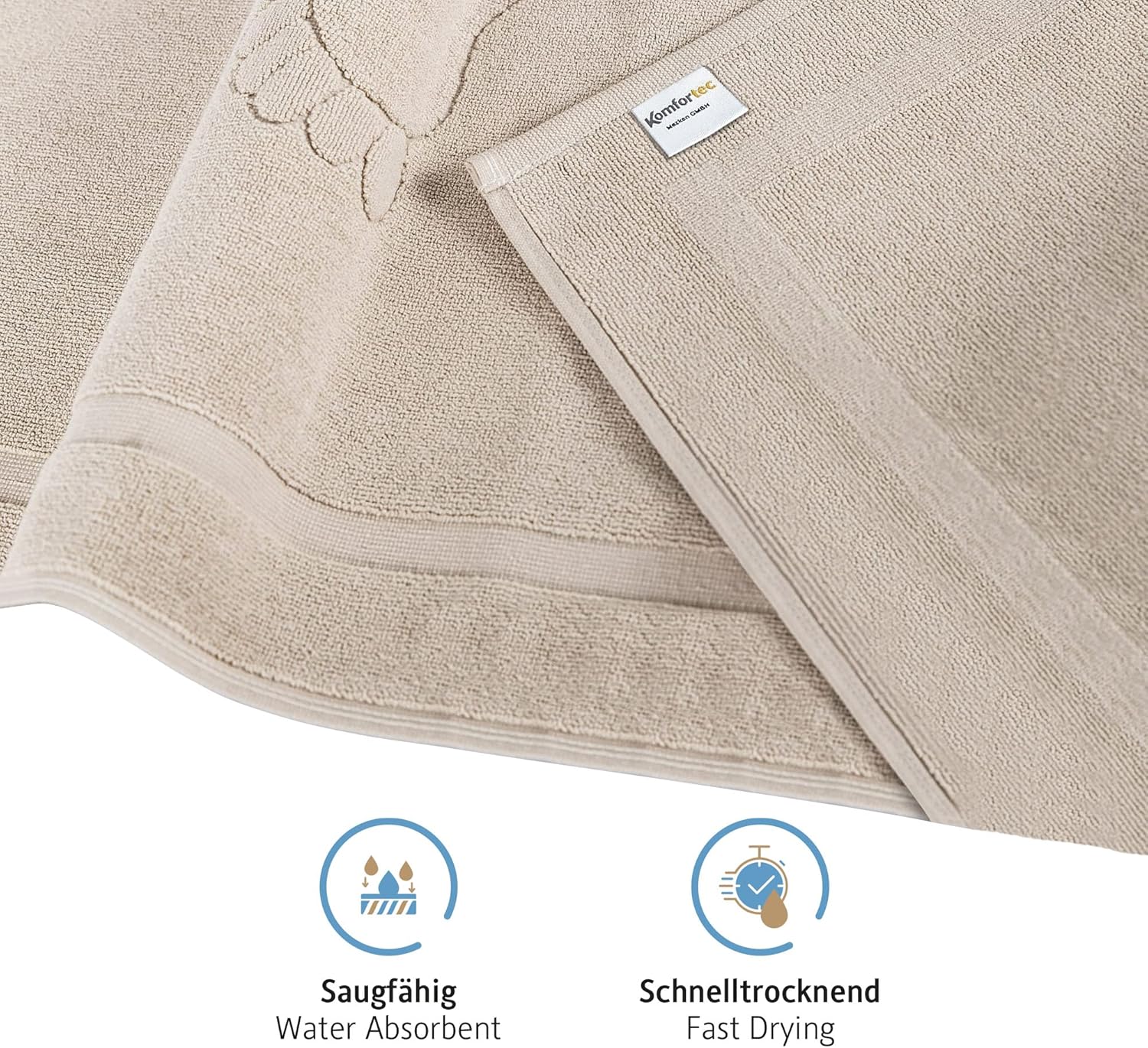 Кърпите за крака Komfortec са произведени от тъкан с плътност 600 гр/м². По този начин те абсорбират повече вода и съхнат бързо.