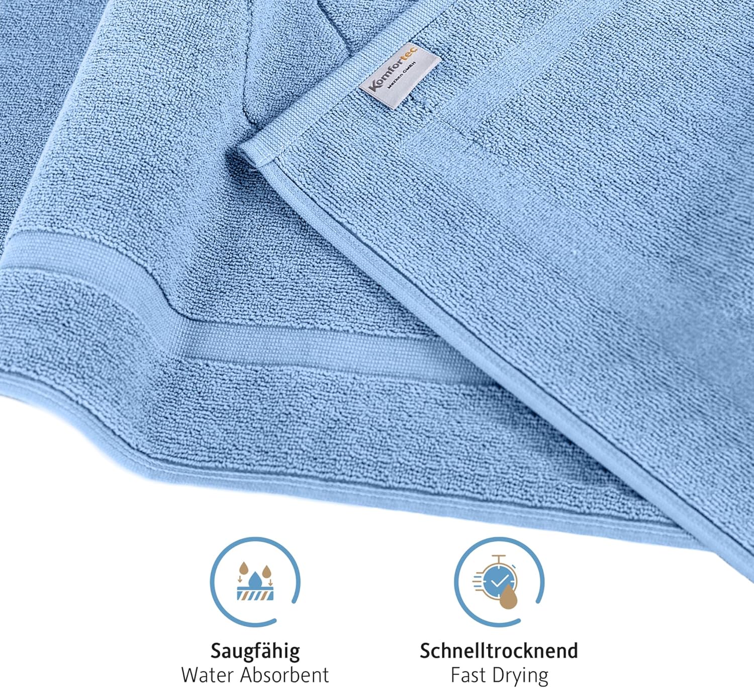 Кърпите за крака Komfortec са произведени от тъкан с плътност 600 гр/м². По този начин те абсорбират повече вода и съхнат бързо.
