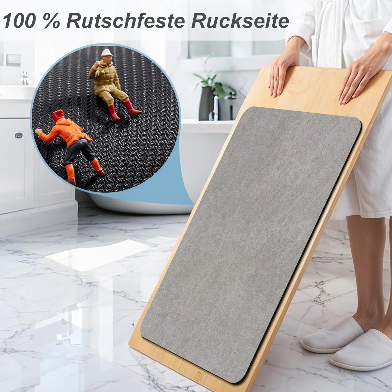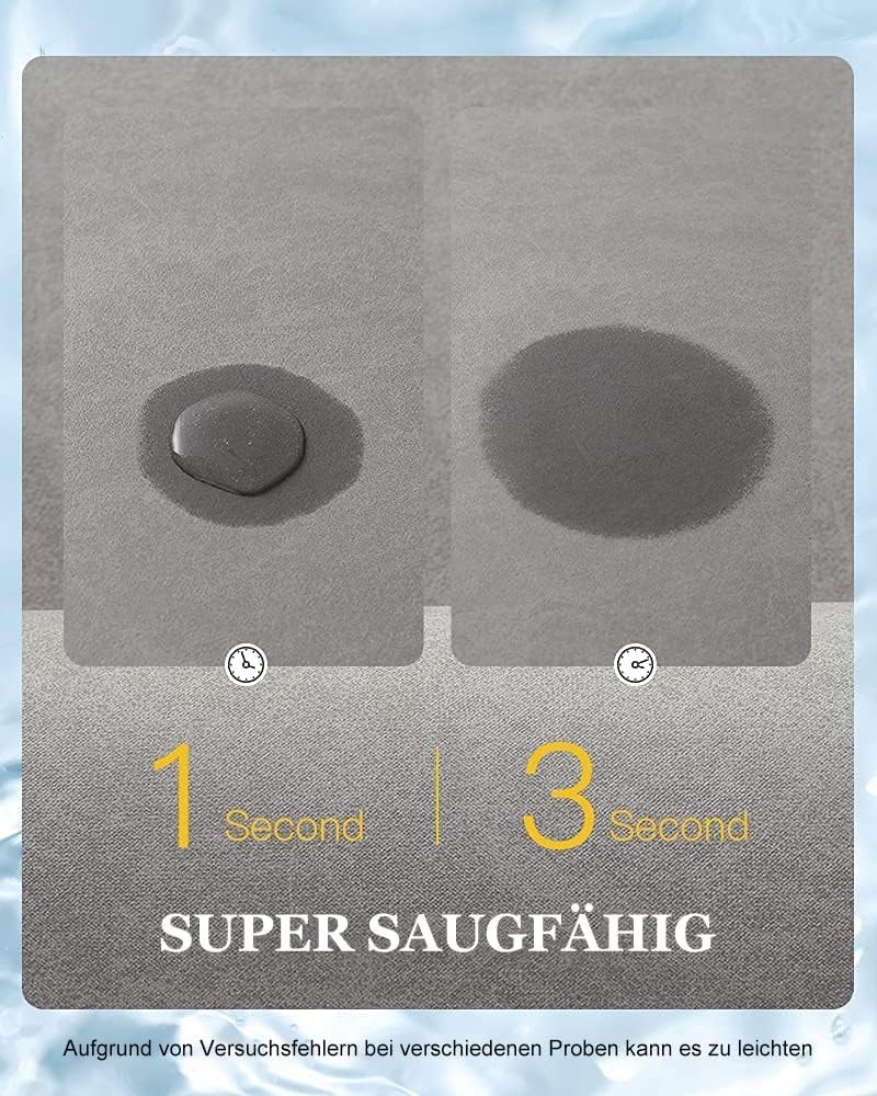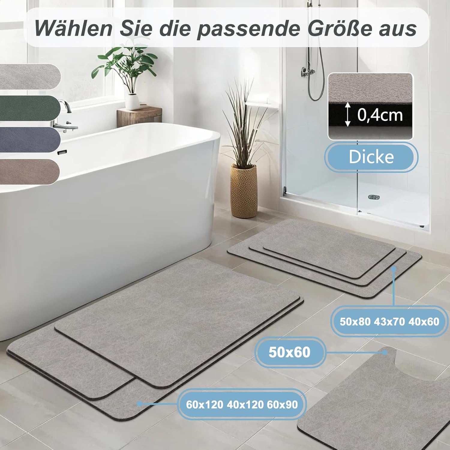 Really absorbent and quick drying – This highly absorbent bath mat has a middle layer of absorbent sponge and diatomaceous earth, which is extremely absorbent. Non-slip mats – These bath mats with rubber backing are designed with a surface made of faux suede, the back is made of rubber. These can prevent slipping and shifting and increase safety and stability. No shedding - These bath mats for the floor are very soft and smooth, unlike traditional chenille rugs for the bathroom. They are more durable and there are no shedding, odours, fading, wearing out or hidden hair. Easy to clean - the smooth surface design helps to resist dirt and hair. Therefore, you do not need to dry or clean the washable bath mats every day. Can be used anywhere - the bath mat is only 4 mm thick, and it will not get stuck in the door opening while it meets foot comfort and water absorption.