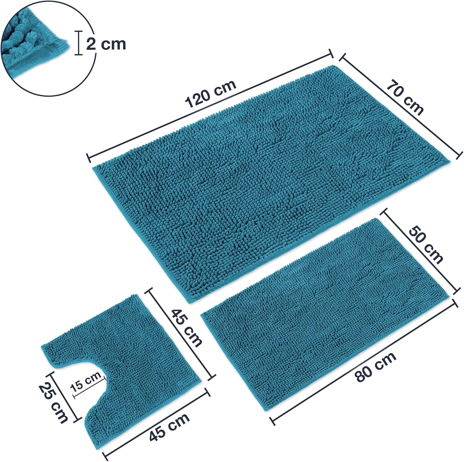 Комплект постелки за баня WohnDirect, постелка за тоалетна (45 x 45 см), постелка за баня (50 x 80 см, 70 x 120 см), неплъзгащ се килим за баня, който може да се пере, със или без изрез за тоалетна чиния