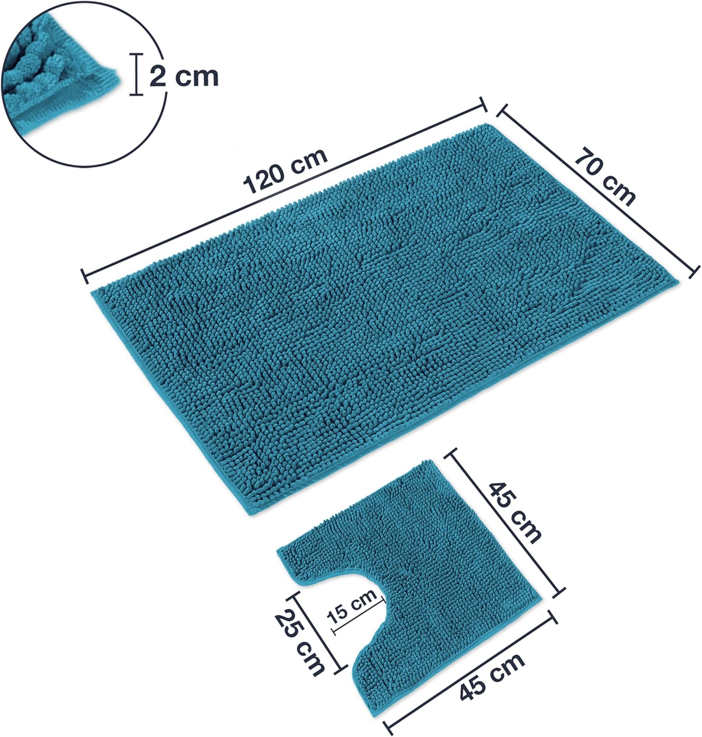 Комплект постелки за баня WohnDirect, постелка за тоалетна (45 x 45 см), постелка за баня (50 x 80 см, 70 x 120 см), неплъзгащ се килим за баня, който може да се пере, със или без изрез за тоалетна чиния