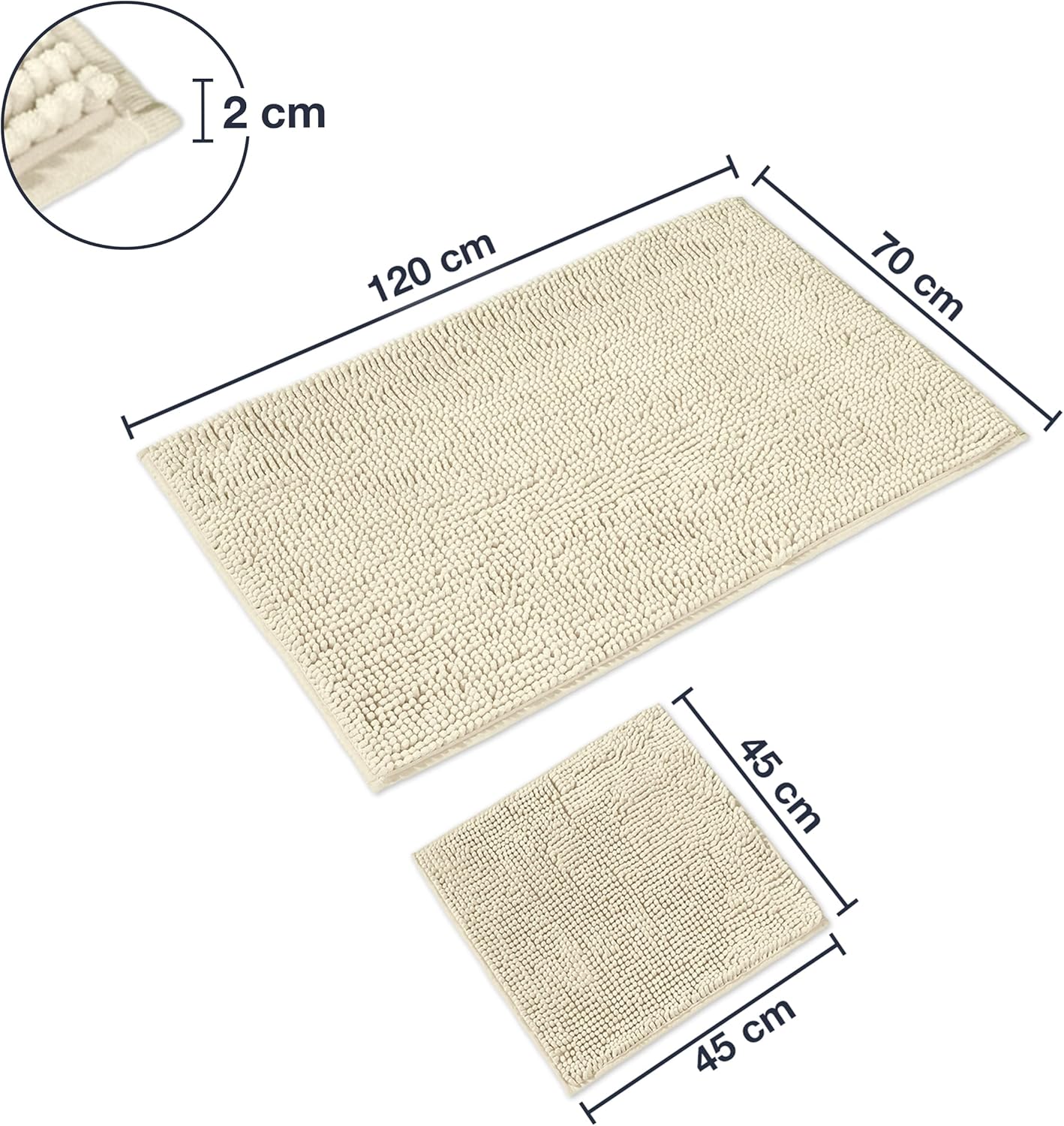 • Неплъзгащи се и здрави: броят на инцидентите в баните е шокиращо висок. Повече от 250 000 души претърпяват инцидент в немски бани всяка година. За да се избегнат подобни инциденти, нашите постелки за баня са покрити с неплъзгащ се латекс, който не се изплъзва, дори когато е мокър в банята.