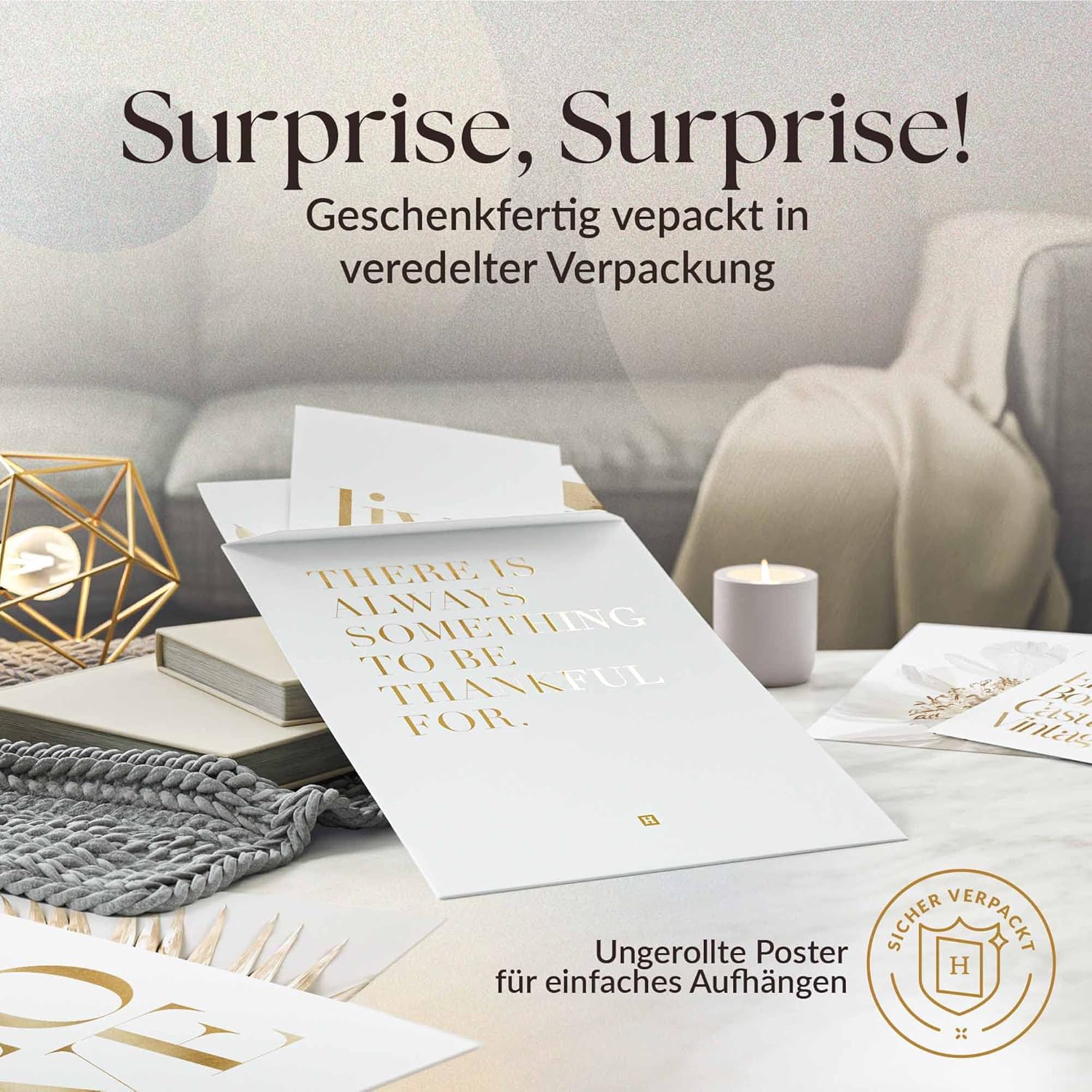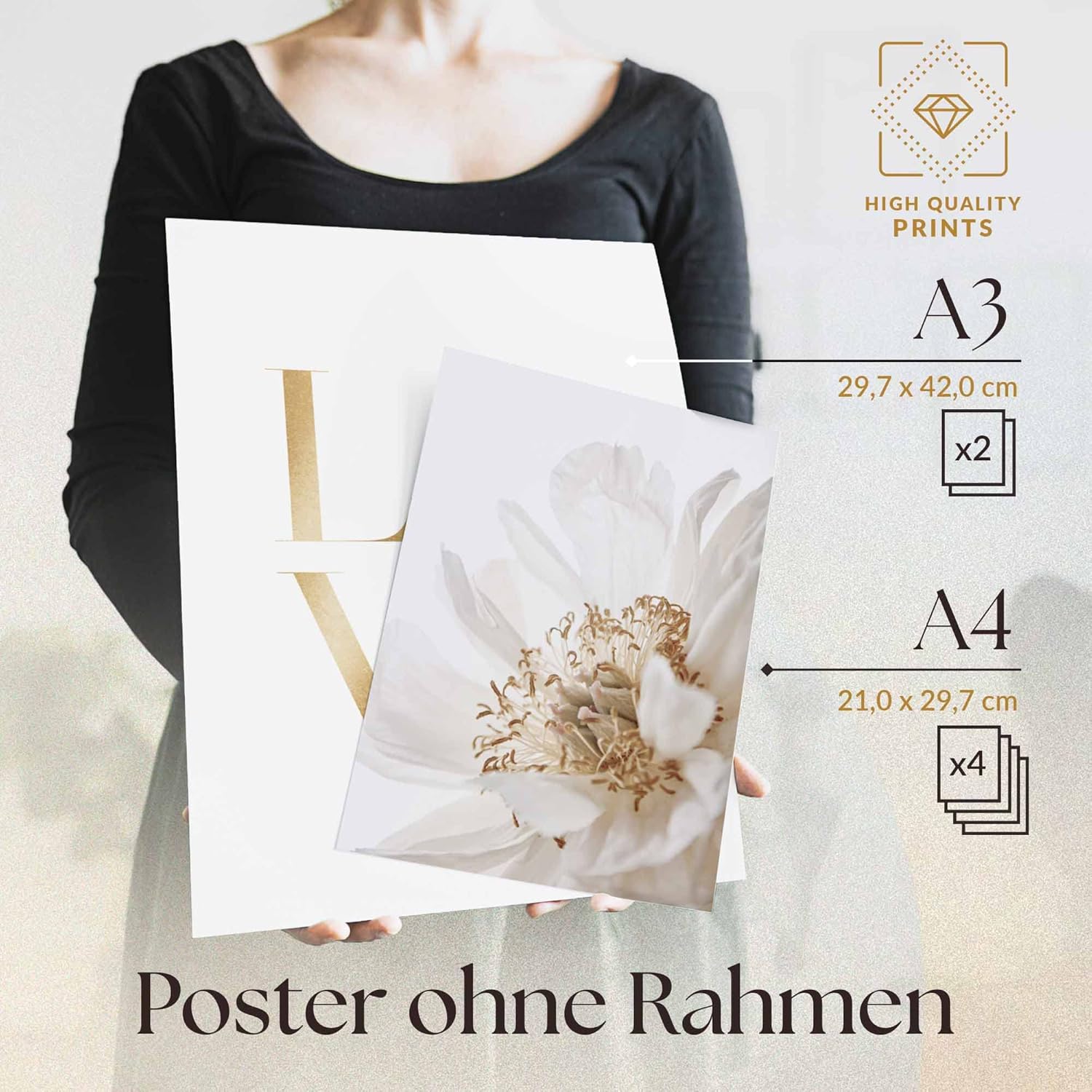 Комплект постери Heimlich® Premium без рамка за картина, стилен комплект с подходящи картини като декорация за хол, 2 x DIN A3 и 4 x DIN A4, приблизително 30 x 42 см и 21 x 30 см "Елегантна златна любов"