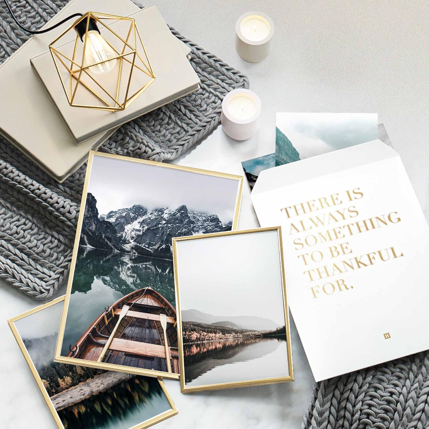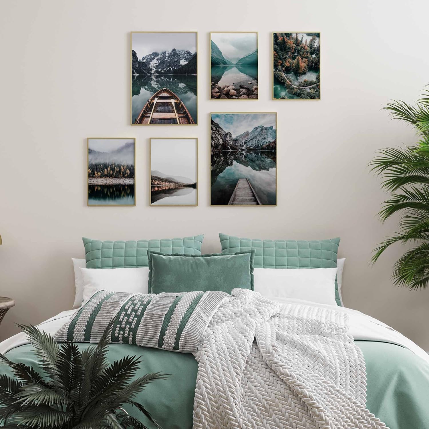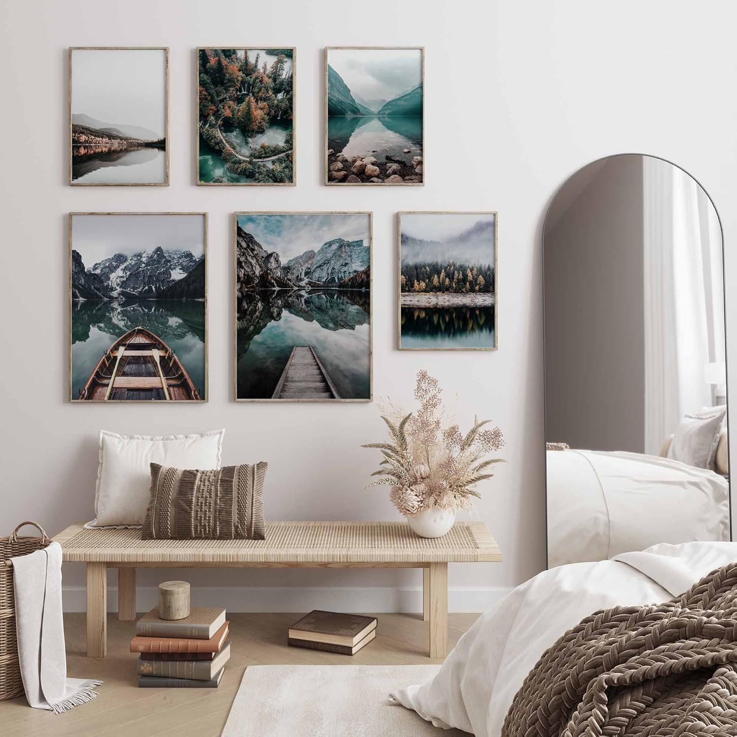 Комплект постери Heimlich® Premium без рамка за картина, стилен комплект с подходящи картини като декорация за хол, 2 x DIN A3 и 4 x DIN A4, приблизително 30 x 42 см и 21 x 30 см "Горско езеро"