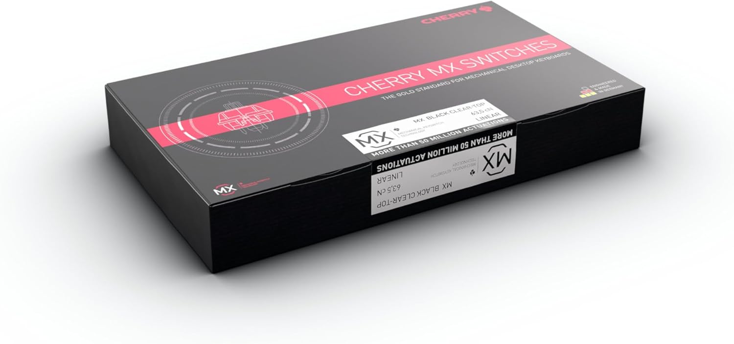 Комплект превключватели CHERRY MX BLACK CLEAR TOP, 23 механични превключвателя за клавиатура, за „Направи си сам“, „Гореща смяна“ или геймърска клавиатура, линеен превключвател без щракване, мощен и директен