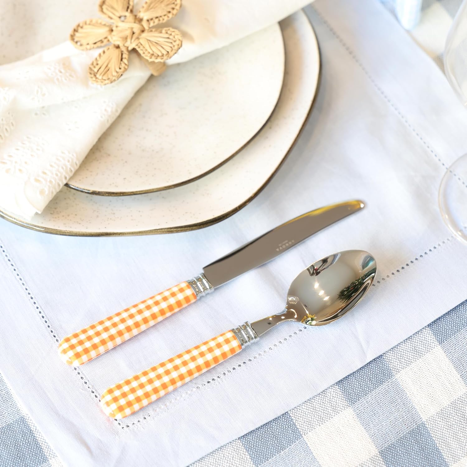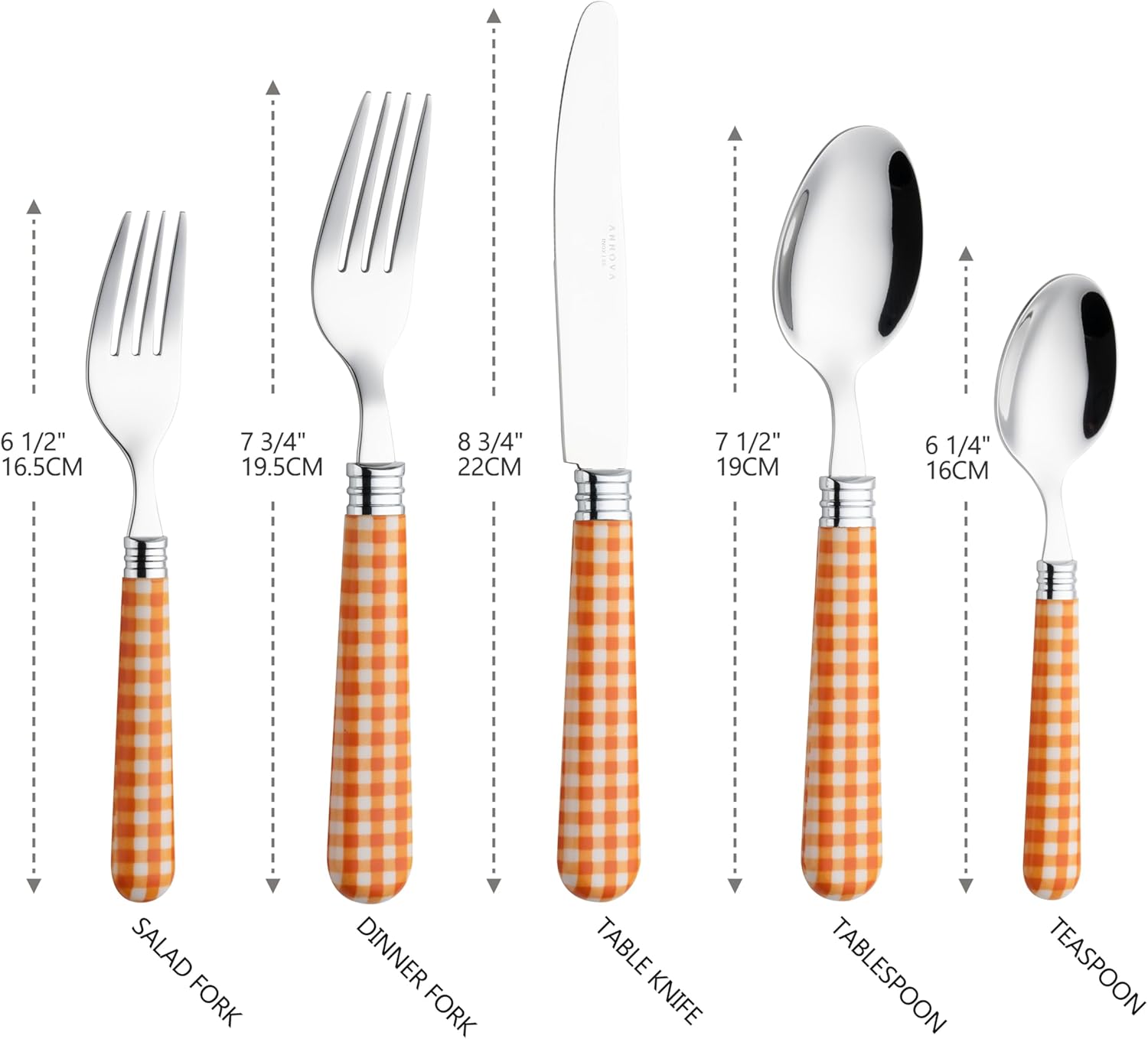 Комплект прибори за хранене ANNOVA, 20 части, дръжки от неръждаема стомана - 4 x ножа за хранене; 4 x вилици за хранене; 4 x вилици за салата; 4 x супени лъжици; 4 x десертни лъжици (Checker Orange, 20 части)