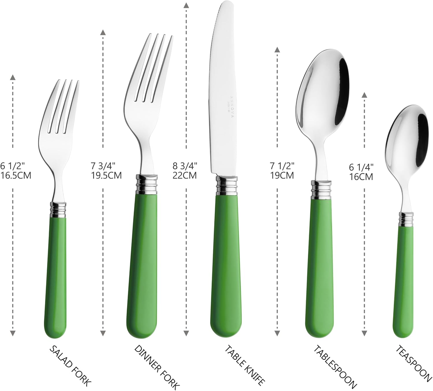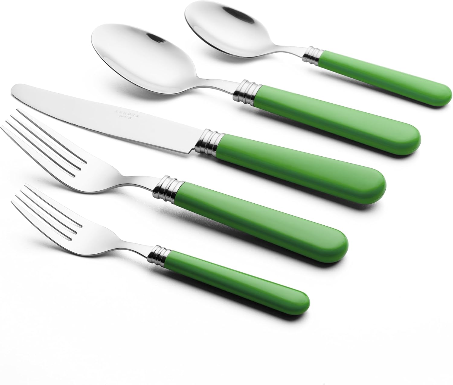 Комплект прибори за хранене ANNOVA, 20 части, дръжки от неръждаема стомана - 4 x ножа за хранене; 4 x вилици за хранене; 4 x вилици за салата; 4 x супени лъжици; 4 x десертни лъжици (зелен, 20 части)