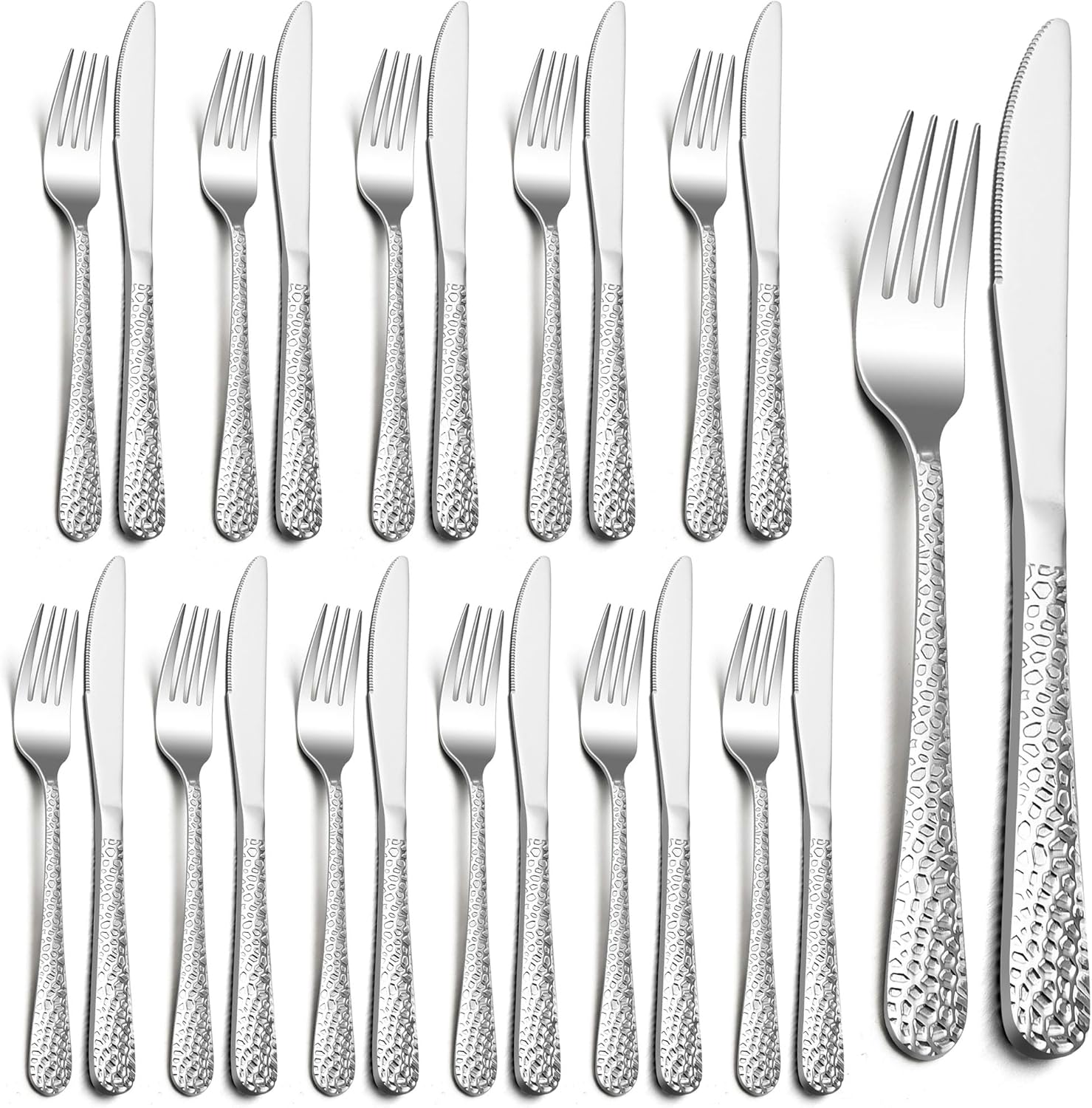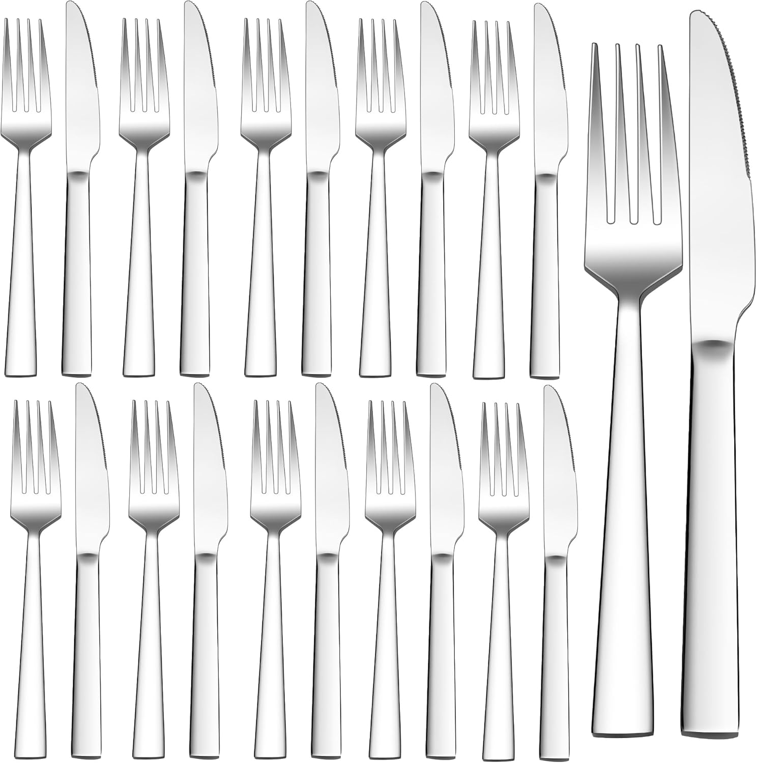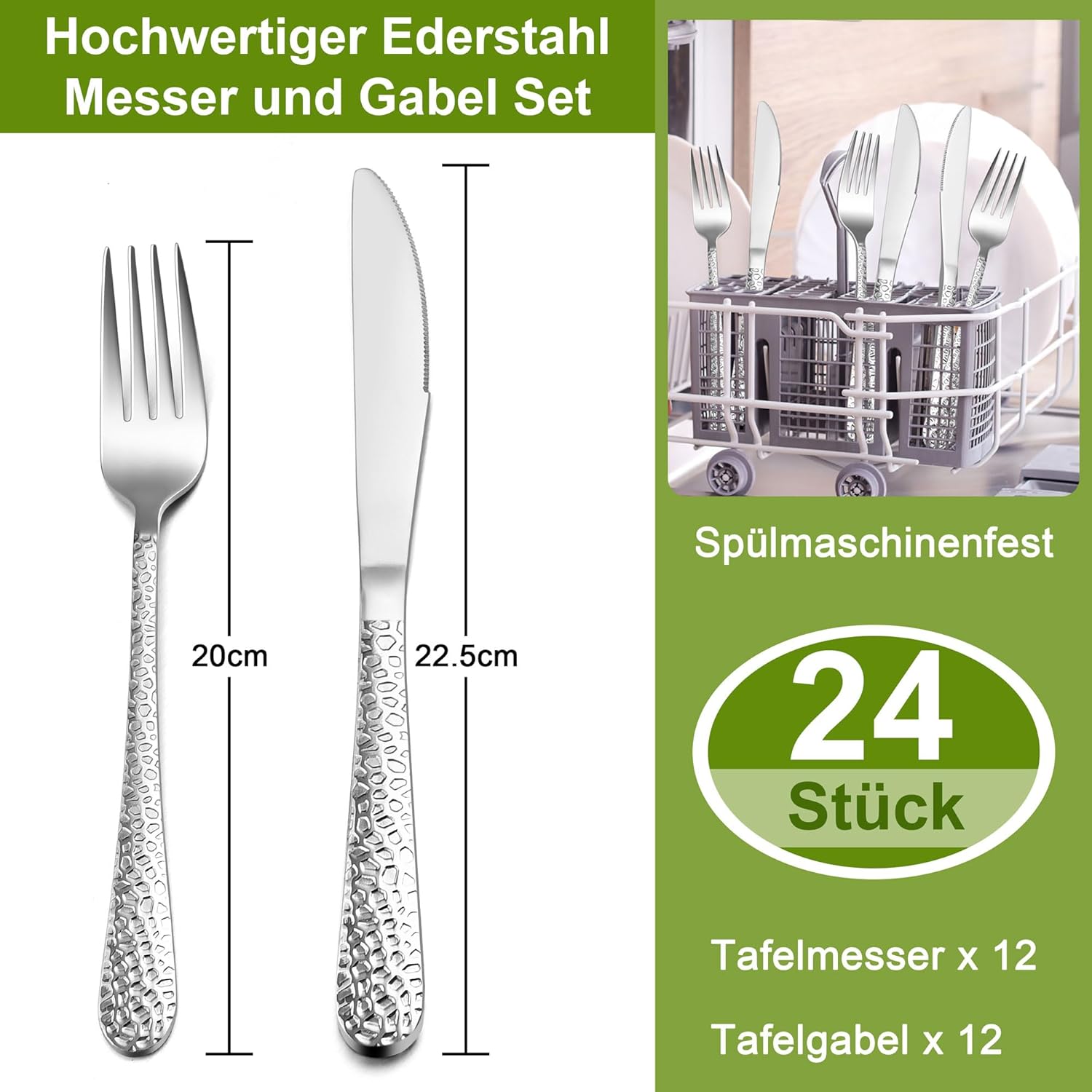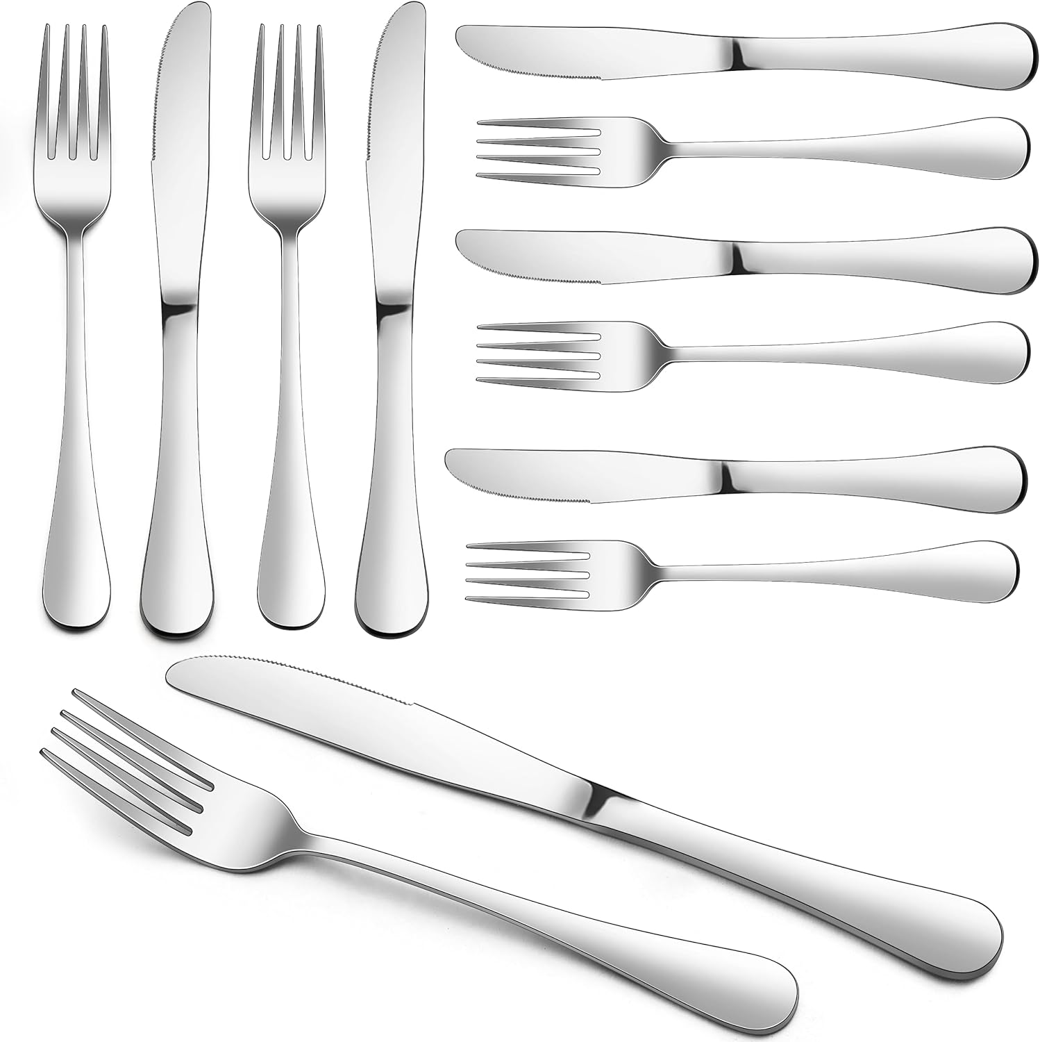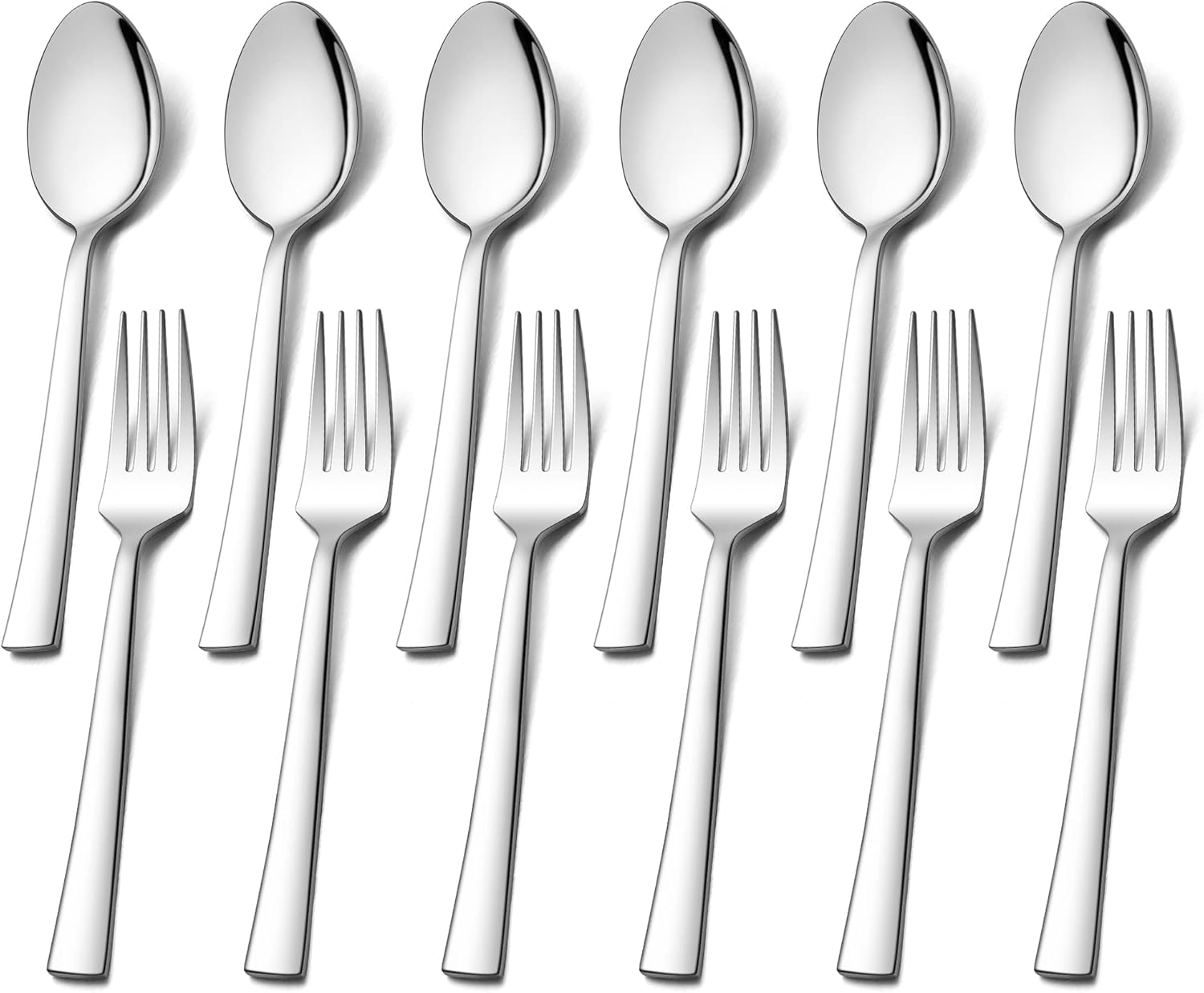 HaWare 12-teilige Edelstahl Besteck Set enthält 6 Stück Gabeln und Löffel, hergestellt aus hochwertigem 18/0 Edelstahl, keine giftigen Substanzen, die in Ihre Lebensmittel auslaugen, stark genug in der Konstruktion, um Biegen und Brechen zu widerstehen, perfekt für den täglichen Gebrauch und die Lagerung, der perfekte Ersatz für Ihr verlorenes Besteck oder alte Gabeln und Löffel. Als das am häufigsten verwendete Besteck für den täglichen Gebrauch und für Partys ist es immer eine kluge Entscheidung, mehr Gabeln und Löffel zu haben. Wenn Sie auf der Suche nach einem günstigen, aber preiswerten Ersatz für Ihr gesamtes Besteck sind, sind Sie hier genau richtig!