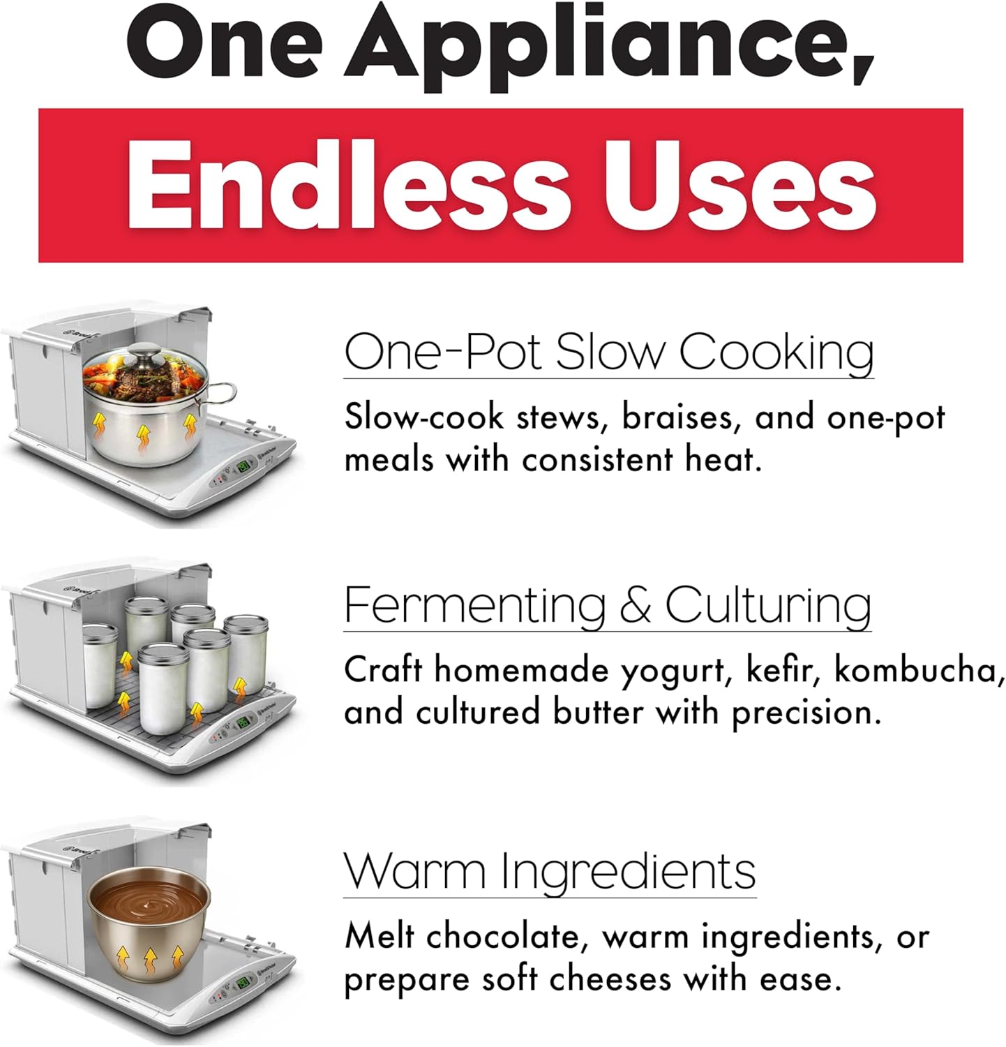 • Подобрен модел на оригиналния сгъваем шкаф за ферментация. Има всички функции на оригиналния сгъваем шкаф за ферментация, както и функция за бавно готвене.