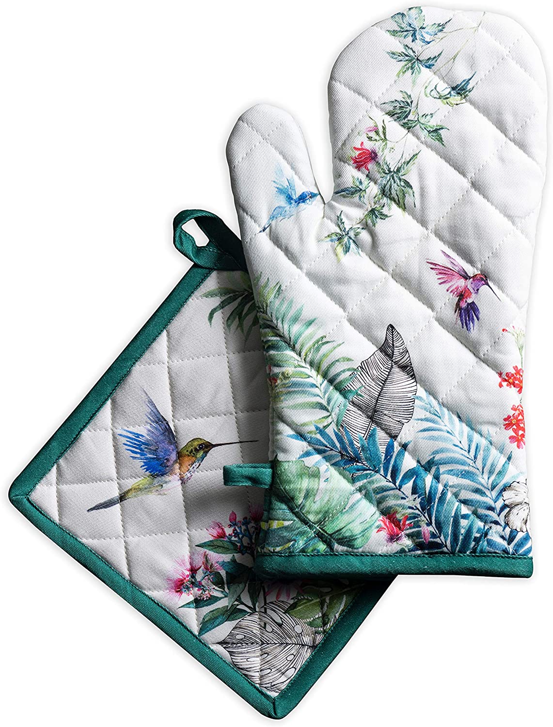 Комплект ръкавица и държач Maison d' Hermine, 100% памук, 19x33см ръкавица, 20x20см държач, Уникален и удобен дизайн