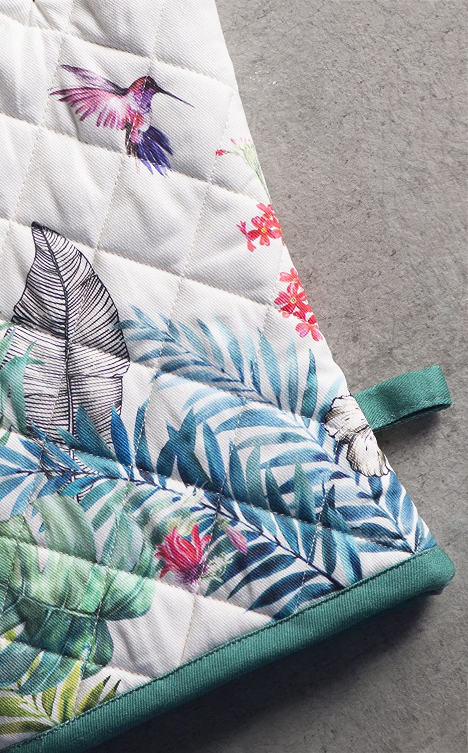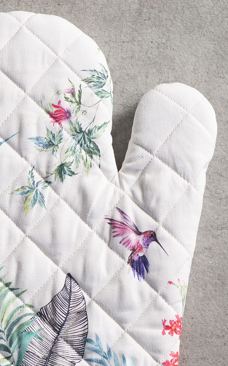 • 100% капитониран памук – за разлика от други ръкавици за фурна е използван само памук с най-добро качество, за да се гарантира приятно и удобно усещане и максимална защита от горещи предмети.
