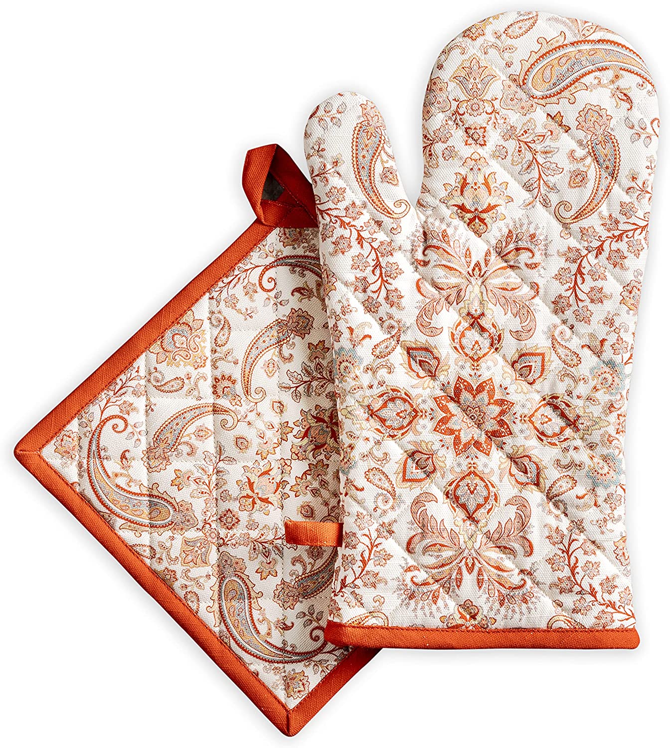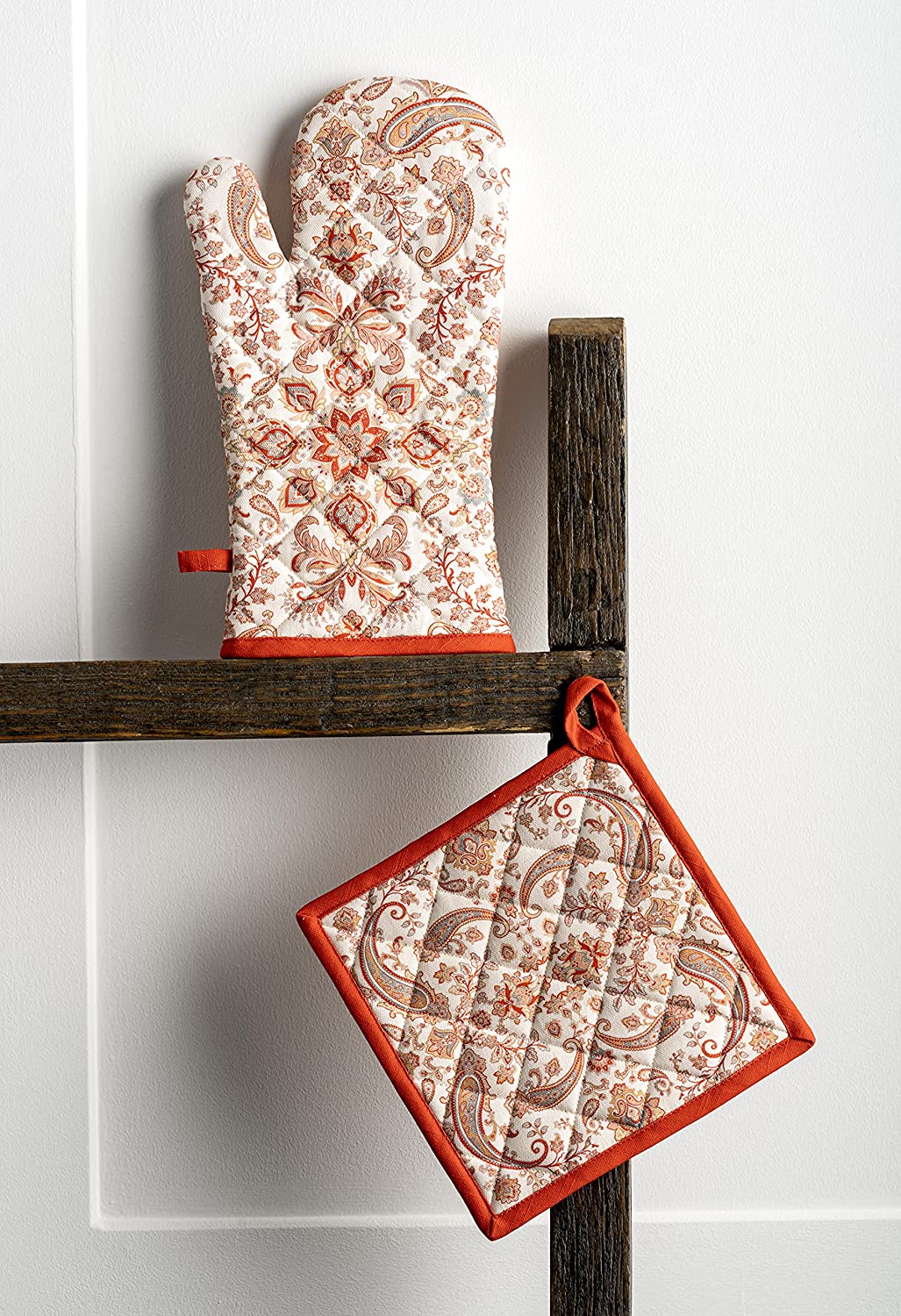 Комплект ръкавица и държач Maison d' Hermine, 100% памук, 19x33см ръкавица, 20x20см държач, Уникален и удобен дизайн