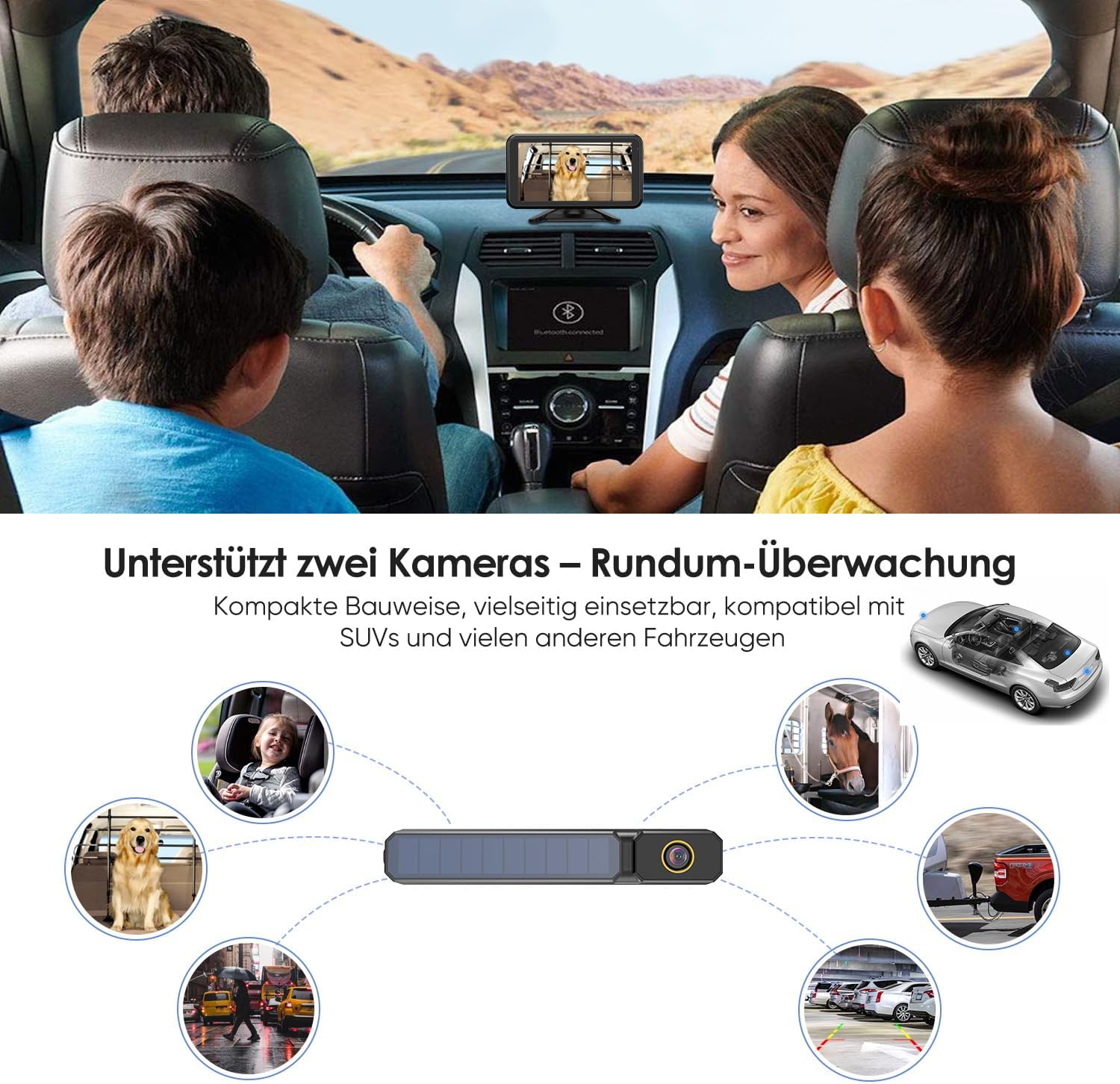 • Кристално ясен 5-инчов HD монитор: Компактен, но ясен! Виждайте всичко в 1080p за безопасно паркиране с тази безжична камера за задно движение. Широкоъгълният обектив ефективно намалява мъртвите зони, повишавайки безопасността ви при маневриране.