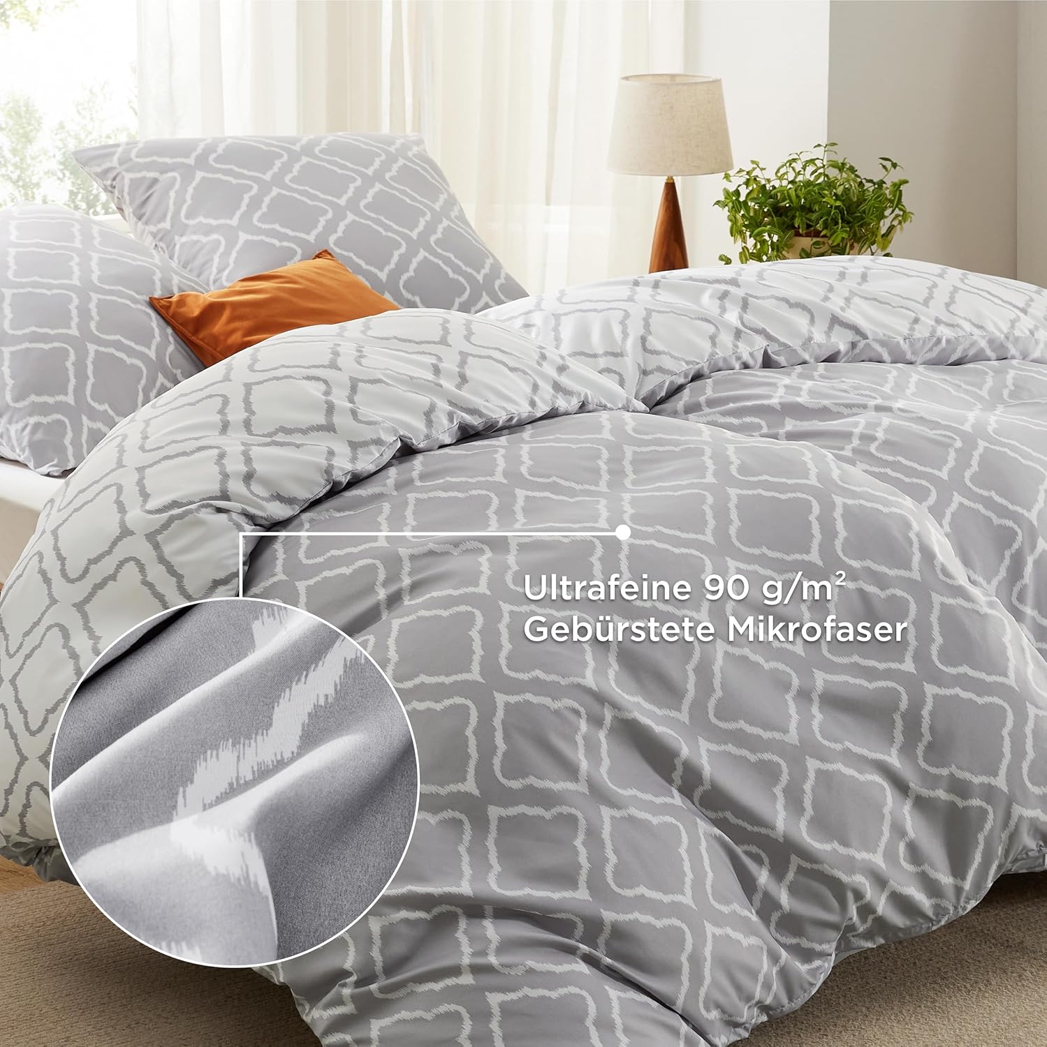 Комплект спално бельо BEDSURE от 2 части с калъф за завивка, 135 x 200 см, и калъфка за възглавница, 80 x 80 см, сив шарен мотив, за единично легло, с цип, мек и не се глади
